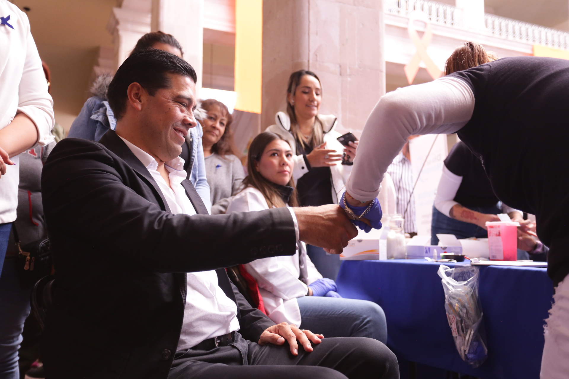 En el primer patio de Palacio Municipal, Leonardo Montañez encabezó el corte del listón de esta campaña destinada a la prevención de la salud del hombre y que incluye la instalación de módulos especiales para atender a la población masculina, a través de la aplicación de pruebas rápidas de antígeno prostático, VIH y Sífilis, pruebas de detección de glucosa y presión arterial; también se brindó información sobre salud física y mental para masculinidades positivas.
