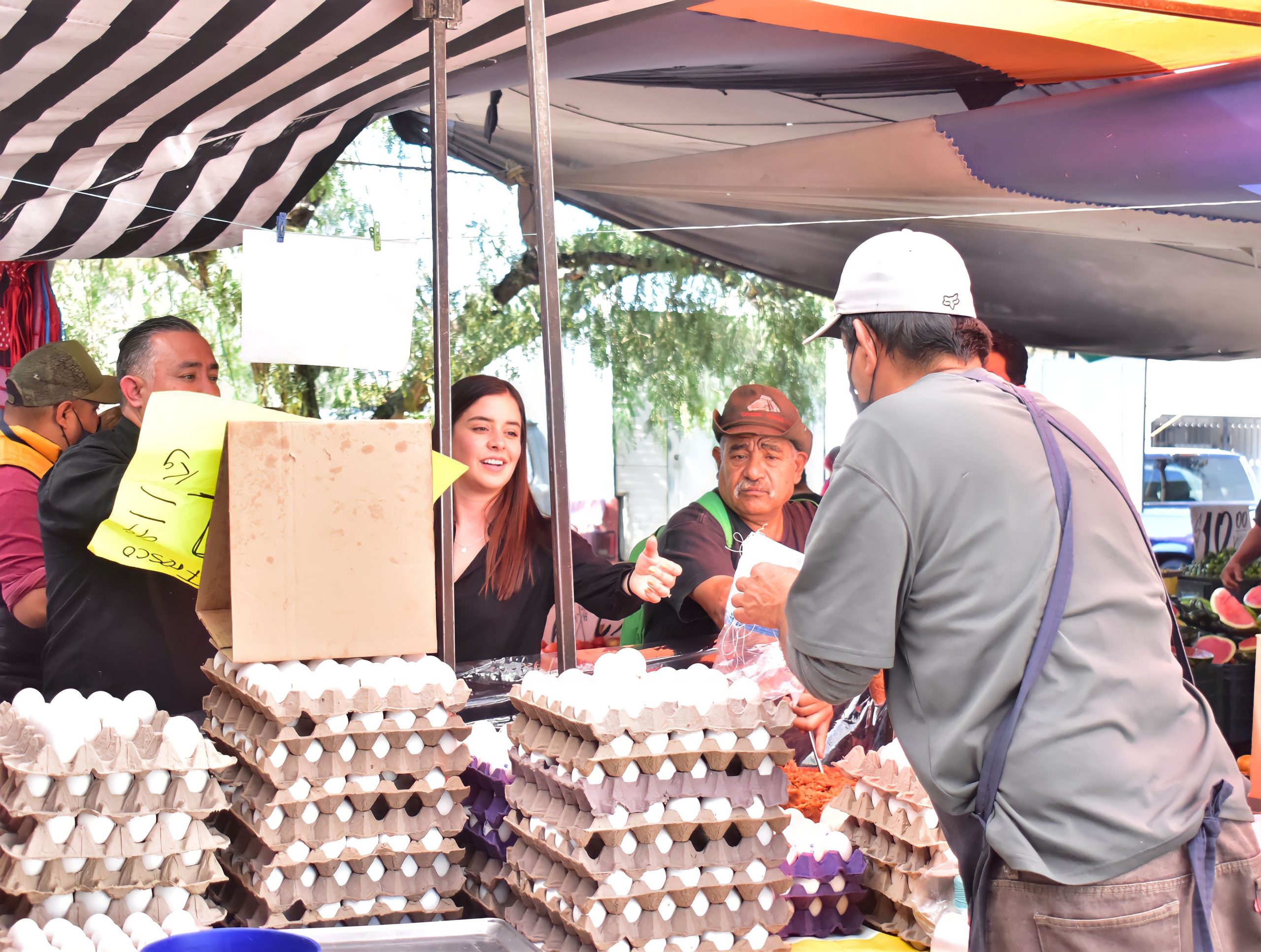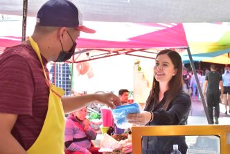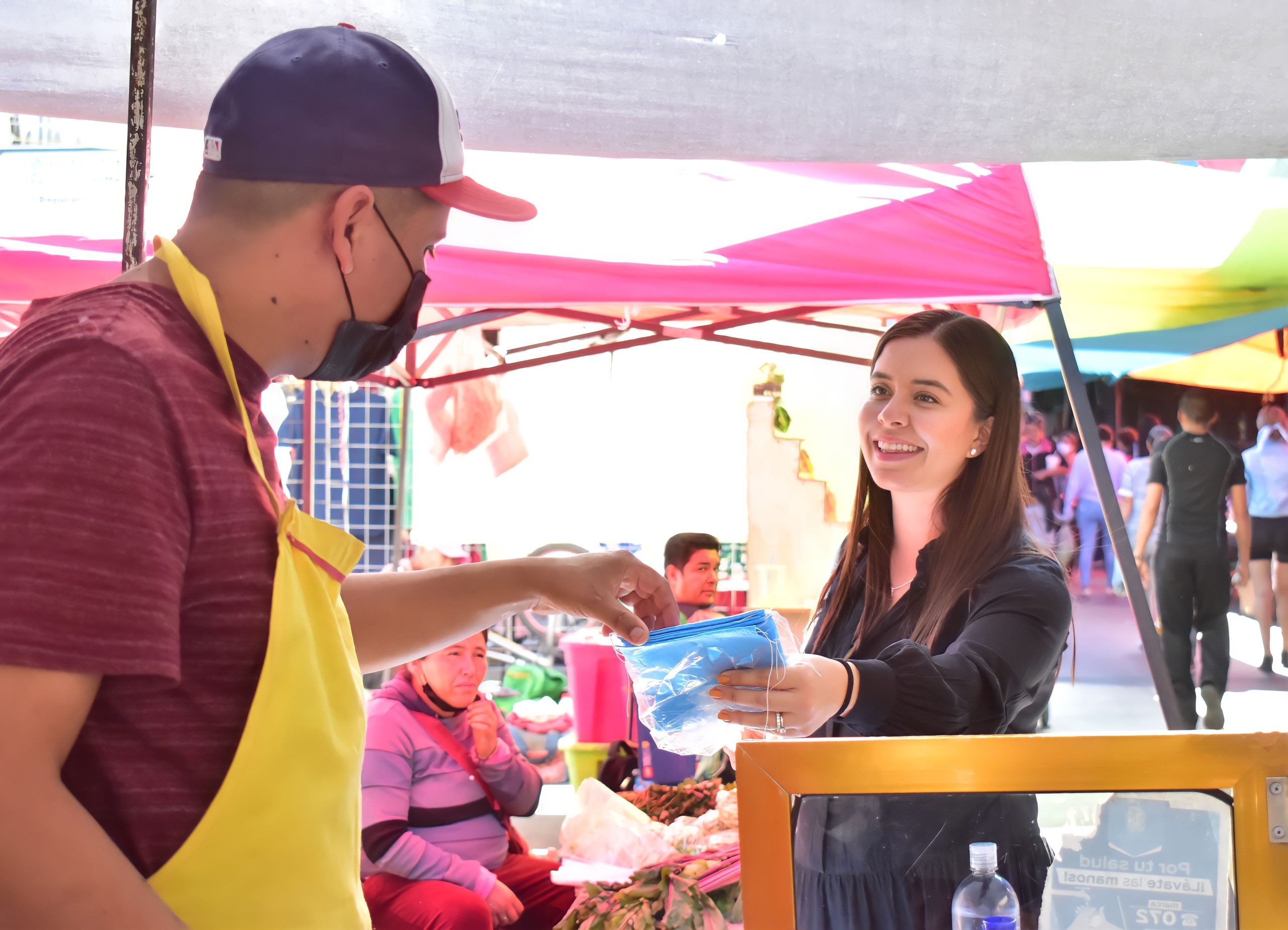 La regidora acompañada del director de Mercados, Estacionamientos y Áreas Comerciales, Israel Díaz García, visitó los diferentes puestos, para dialogar con los comerciantes sobre la importancia de cumplir con las disposiciones y reglamentación municipal vigente para ejercer el comercio en vía pública; asimismo, escucharon las propuestas de los tianguistas a fin de reforzar los lazos de comunicación y de esta manera, mantener un tianguis eficiente beneficiando tanto a comerciantes, consumidores y vecinos.