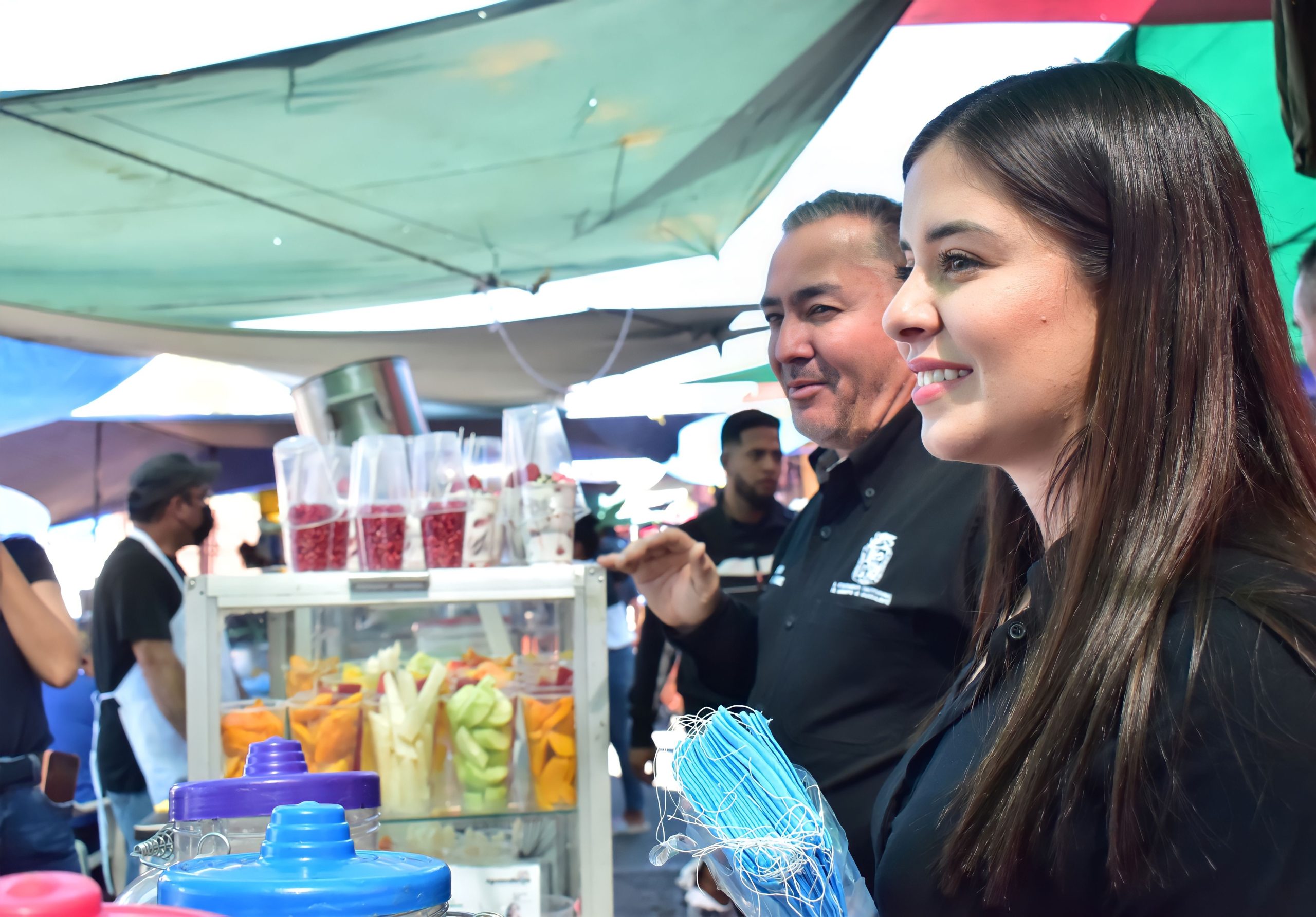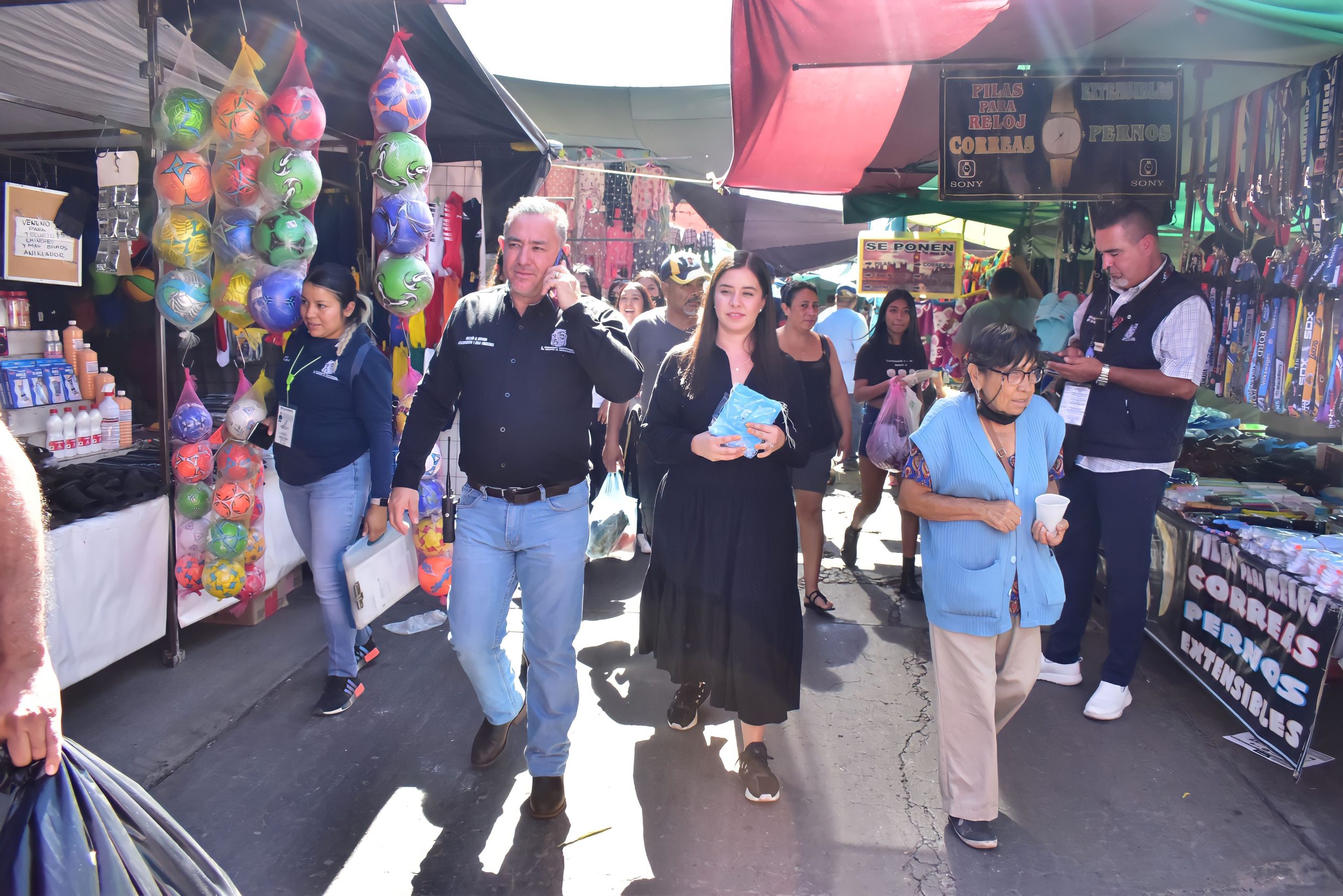 • La regidora Jaqueline Azcona y el director de Mercados, Israel Díaz, recorrieron el tianguis de Pilar Blanco