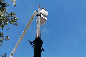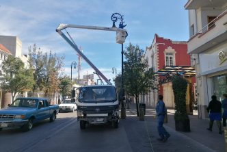 Con el propósito de tener en tiempo y forma todos los elementos que adornarán el Centro Histórico de la ciudad con motivo de las fiestas decembrinas, trabajadores de la Dirección de Alumbrado Público han comenzado a instalar cientos de series de luces blancas de tecnología led en las calles Francisco I. Madero y Moctezuma, así como en los árboles de Plaza de la Patria.