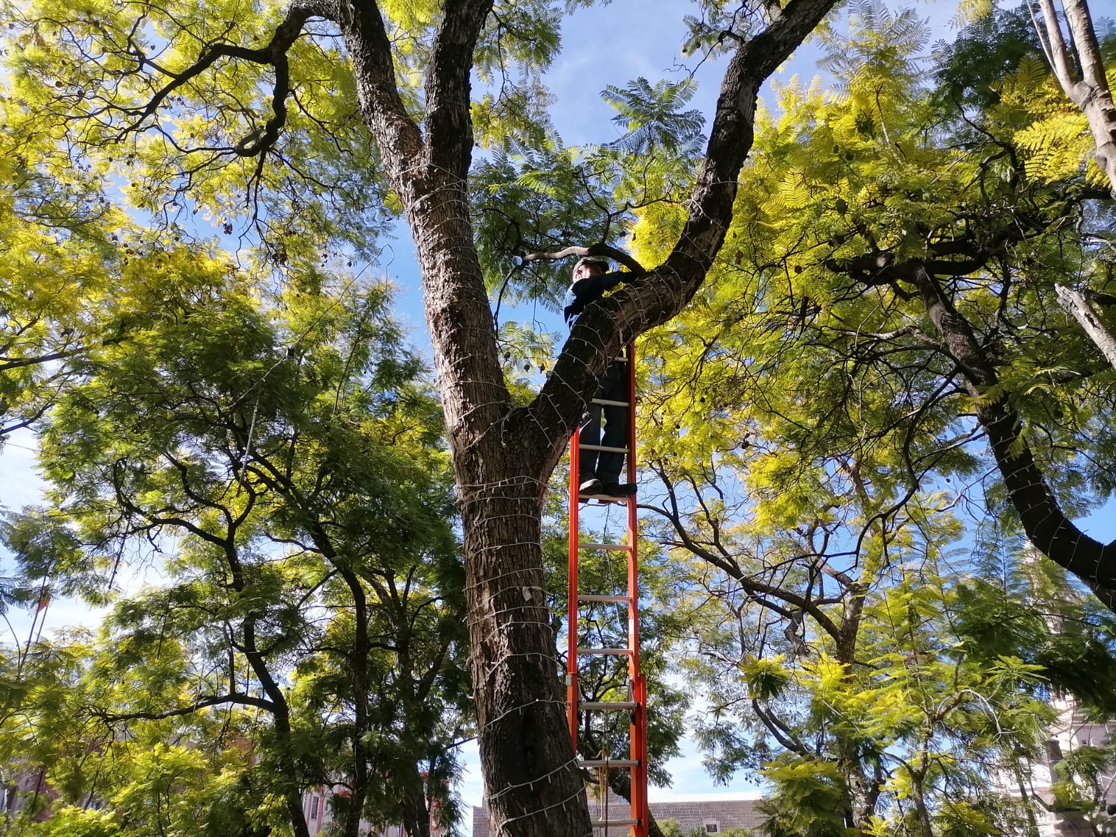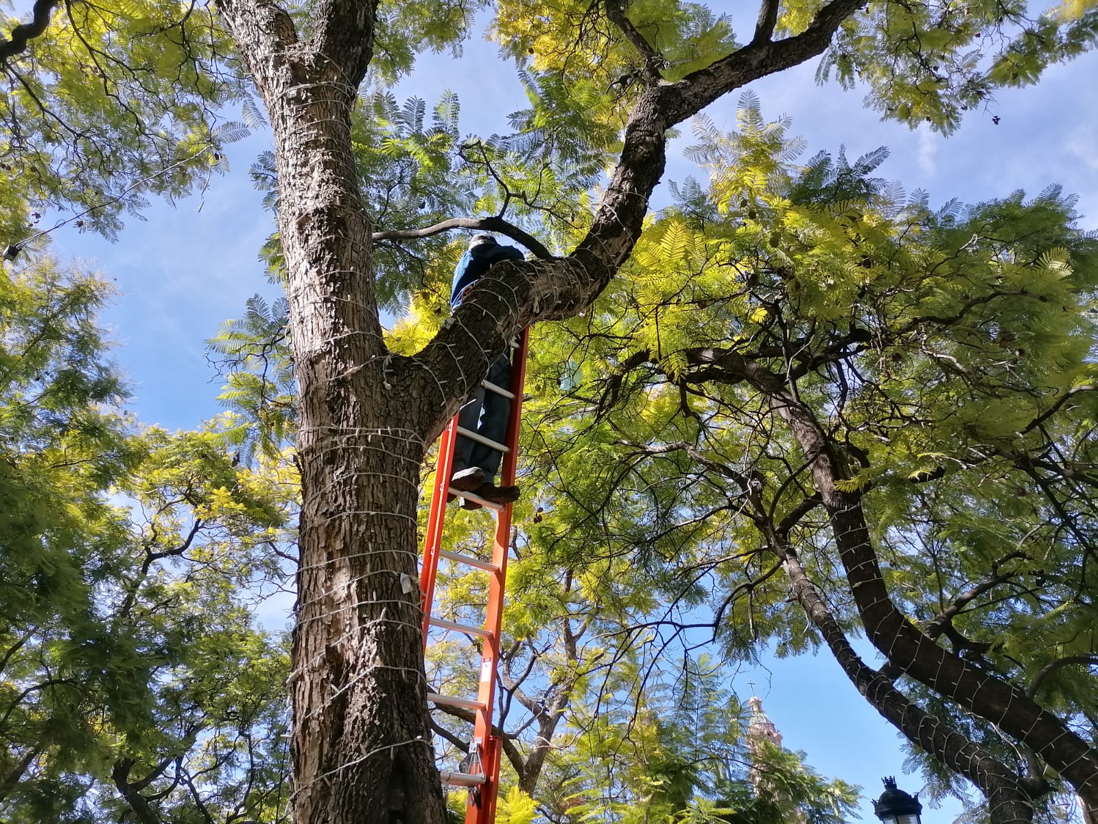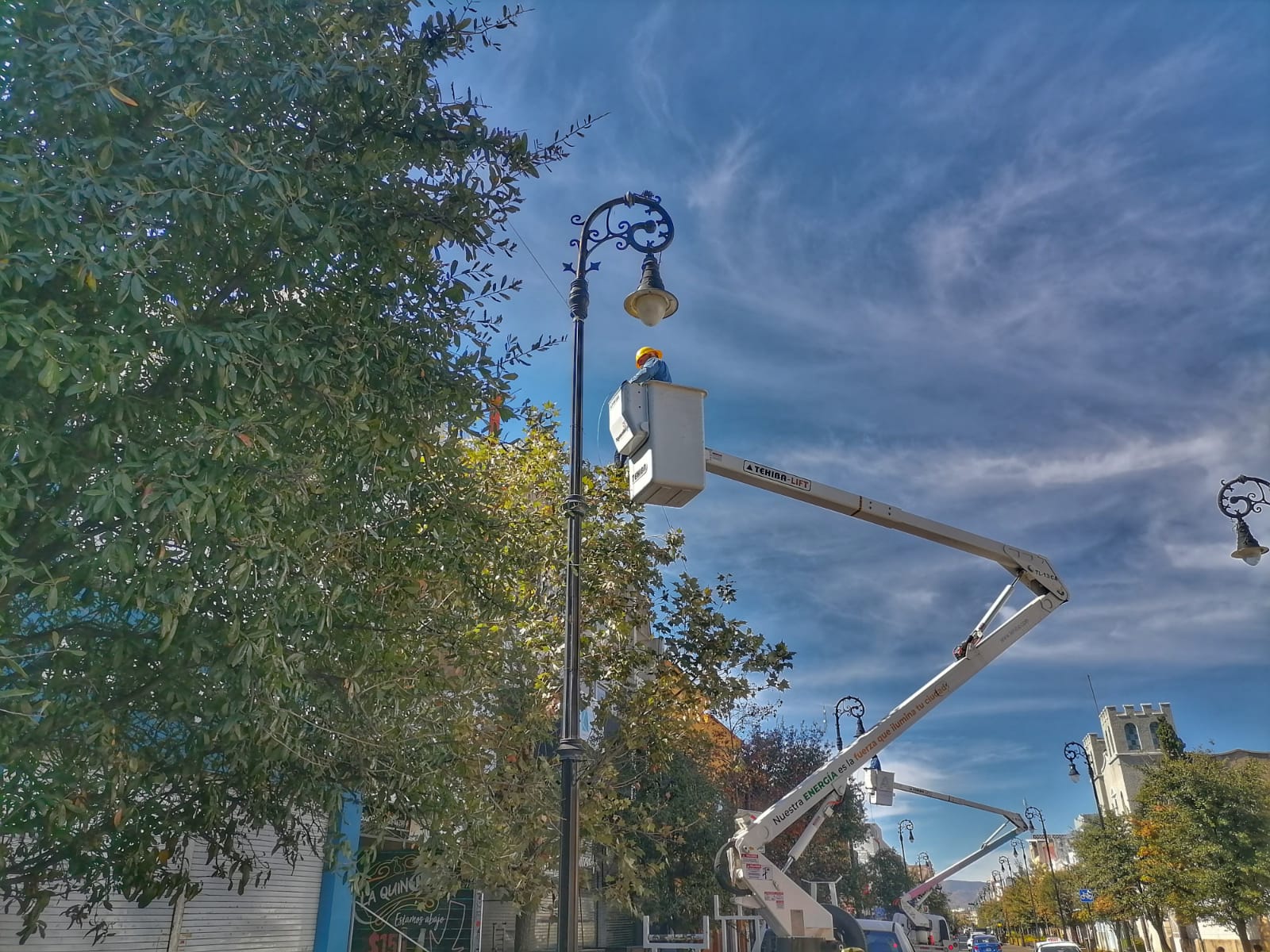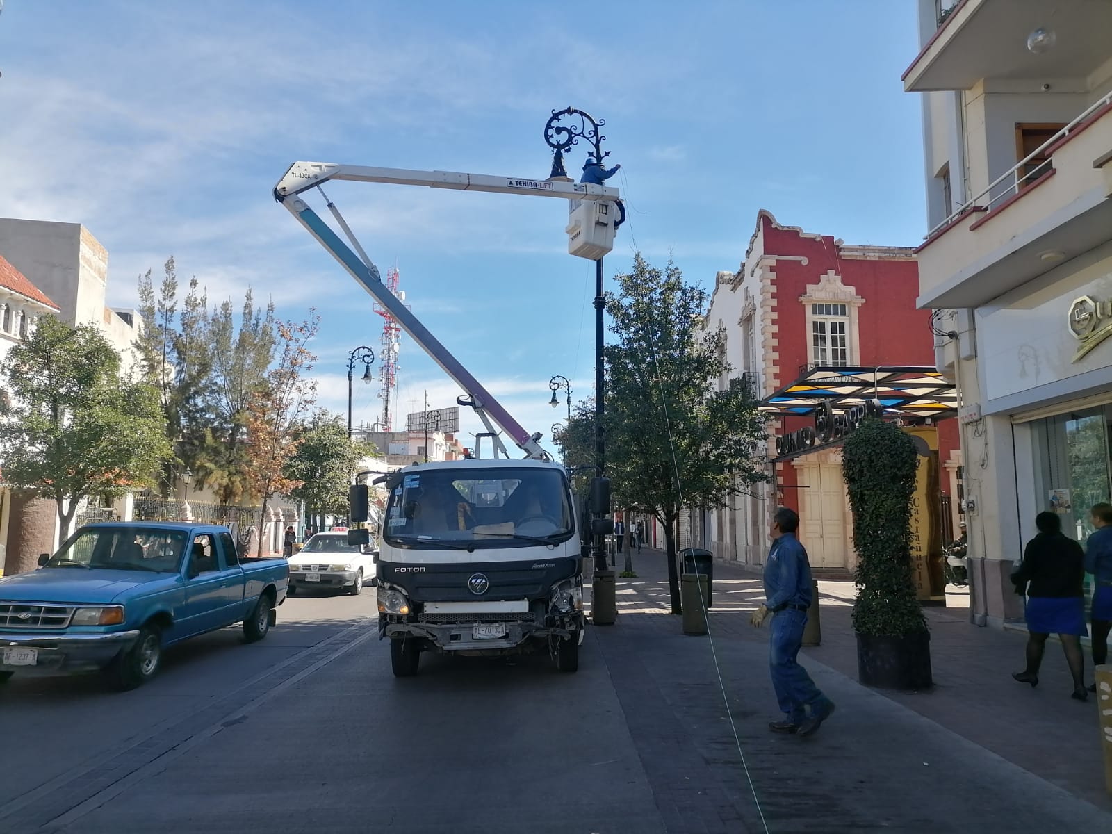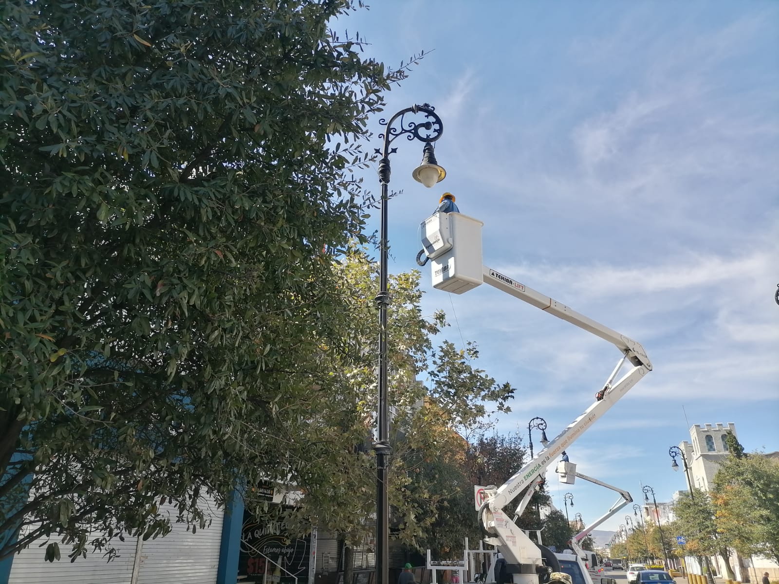 Con el propósito de tener en tiempo y forma todos los elementos que adornarán el Centro Histórico de la ciudad con motivo de las fiestas decembrinas, trabajadores de la Dirección de Alumbrado Público han comenzado a instalar cientos de series de luces blancas de tecnología led en las calles Francisco I. Madero y Moctezuma, así como en los árboles de Plaza de la Patria.