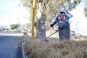 Más de 30 mil metros cuadrados de áreas verdes y espacios públicos son intervenidos diariamente por trabajadores de la Secretaría de Servicios Públicos (SSP), con acciones de cuidado, recuperación, limpieza y desmalezado, con la intención de generar zonas y un ambiente más saludables.