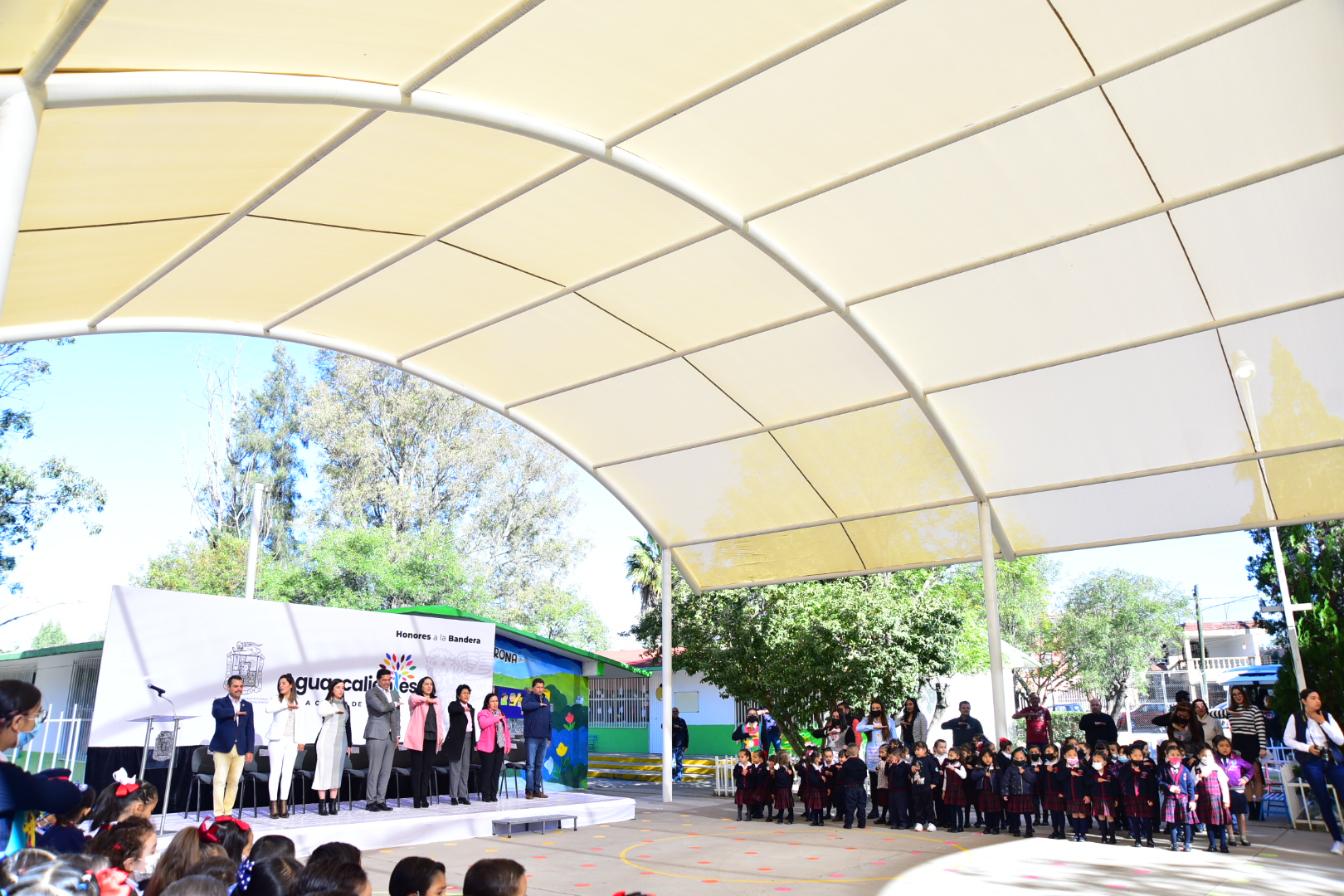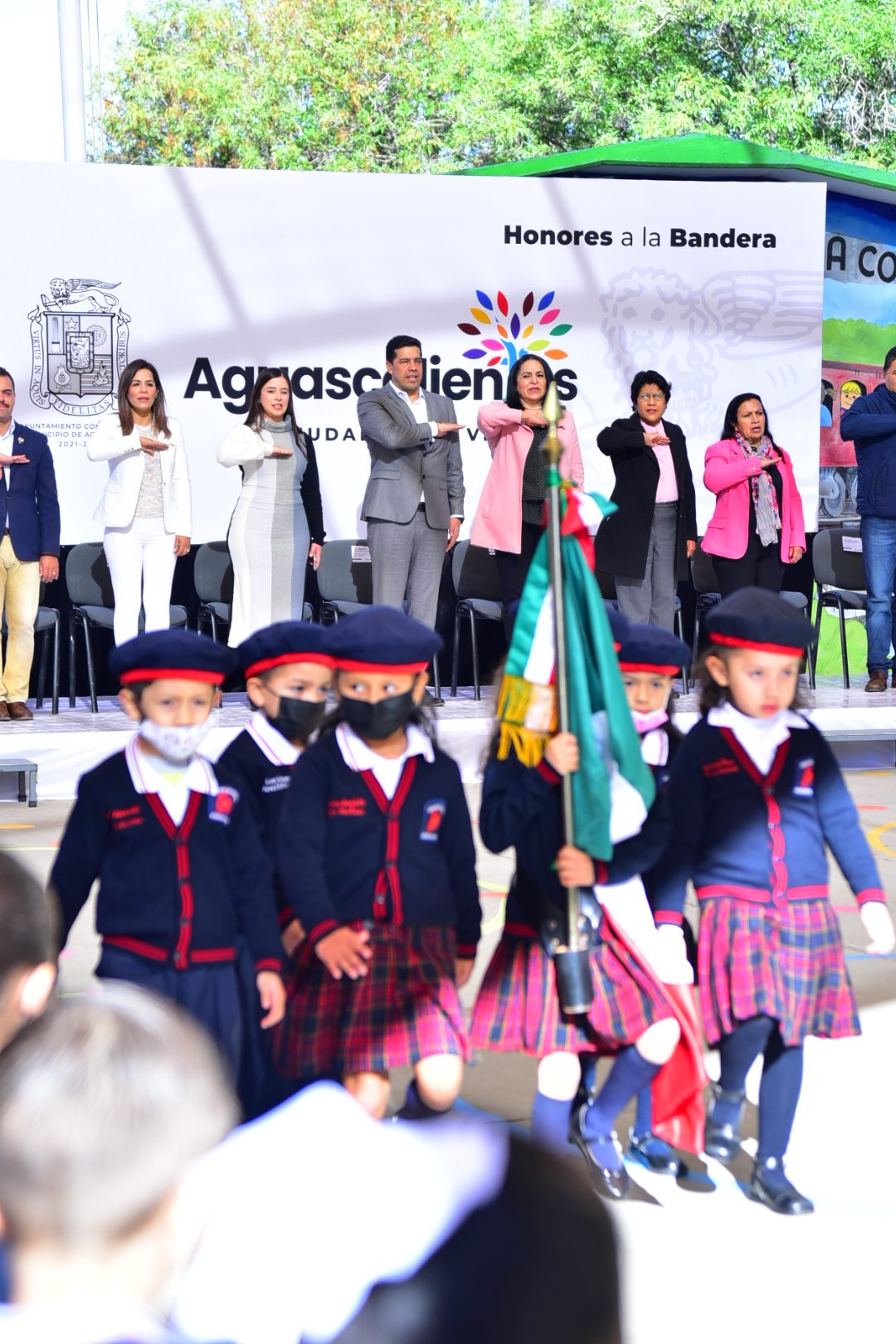 Con el propósito de promover la educación basada en valores, identidad nacional y cultura cívica, el presidente municipal de Aguascalientes, Leonardo Montañez, presidió la ceremonia de los honores a la bandera en el Jardín de Niños “Jesús García Corona”, ubicado en el fraccionamiento Jesús Terán.