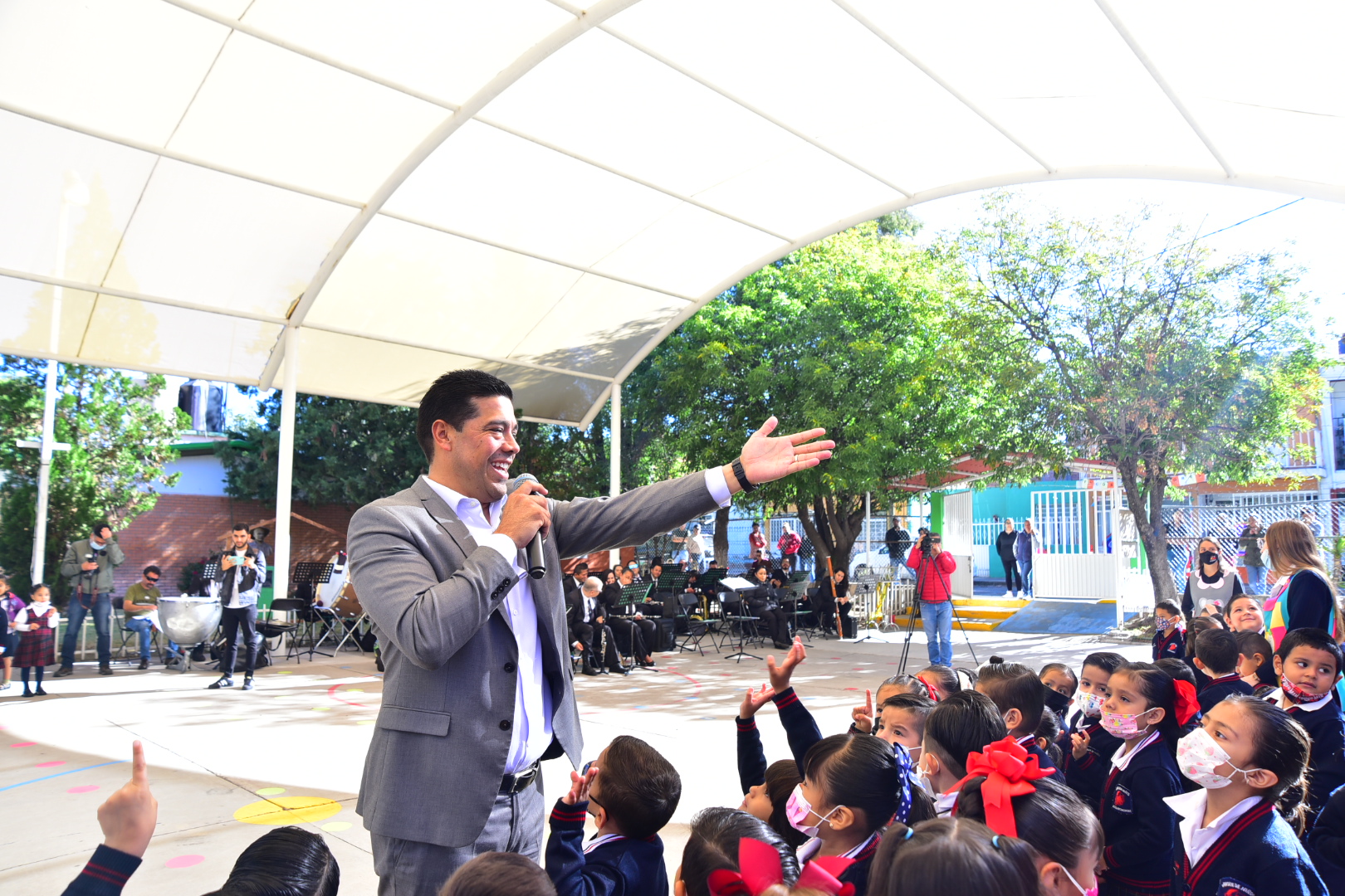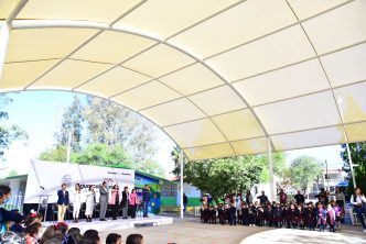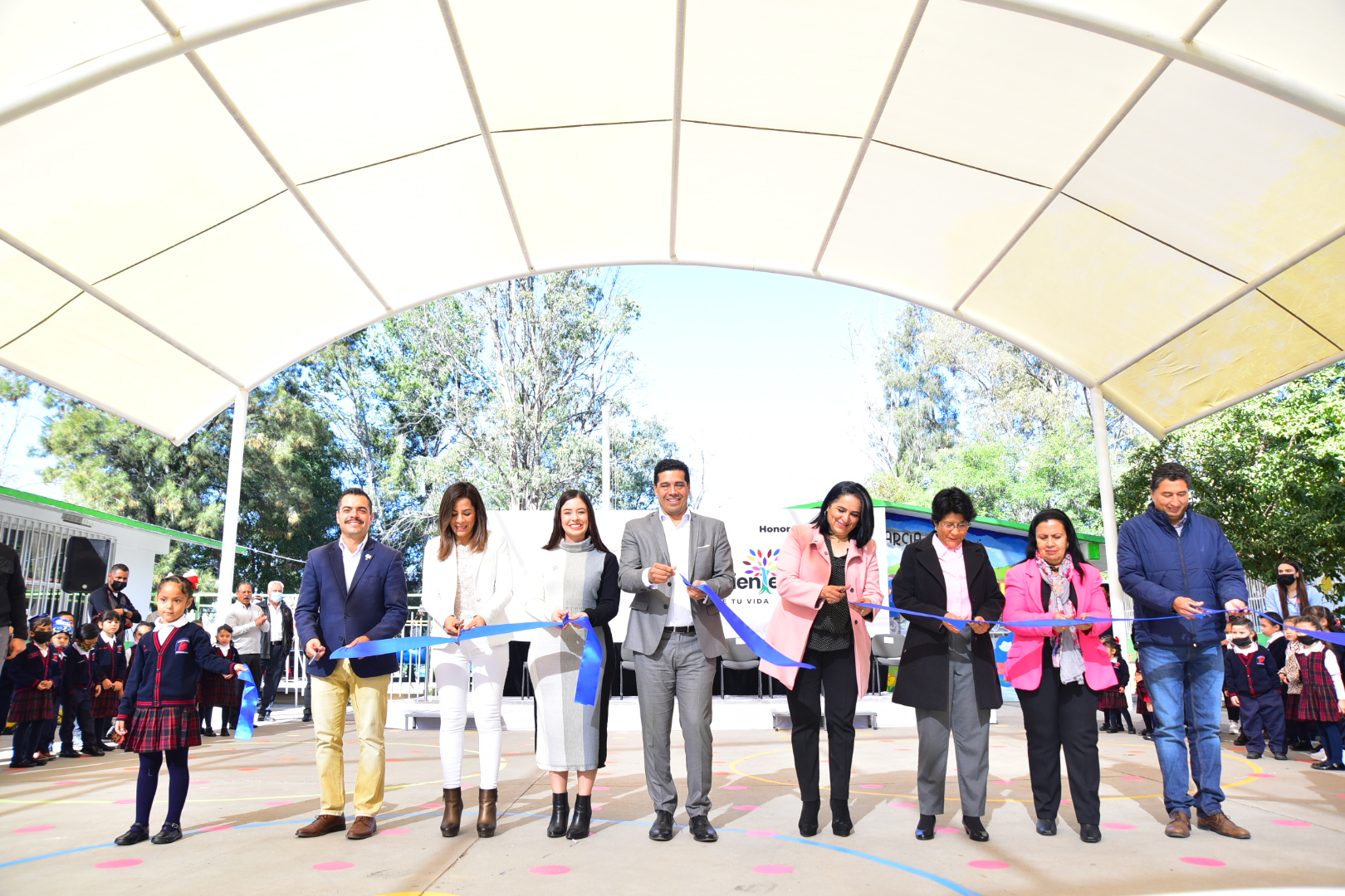 Leonardo Montañez expresó que la apuesta más importante de la actual administración municipal es la educación, así como el fomento a la actividad física, por lo que realizó la entrega de una velaria, la cual permitirá que tanto alumnos como docentes de este jardín de niños, puedan desarrollar sus actividades al aire libre debidamente resguardados del sol.