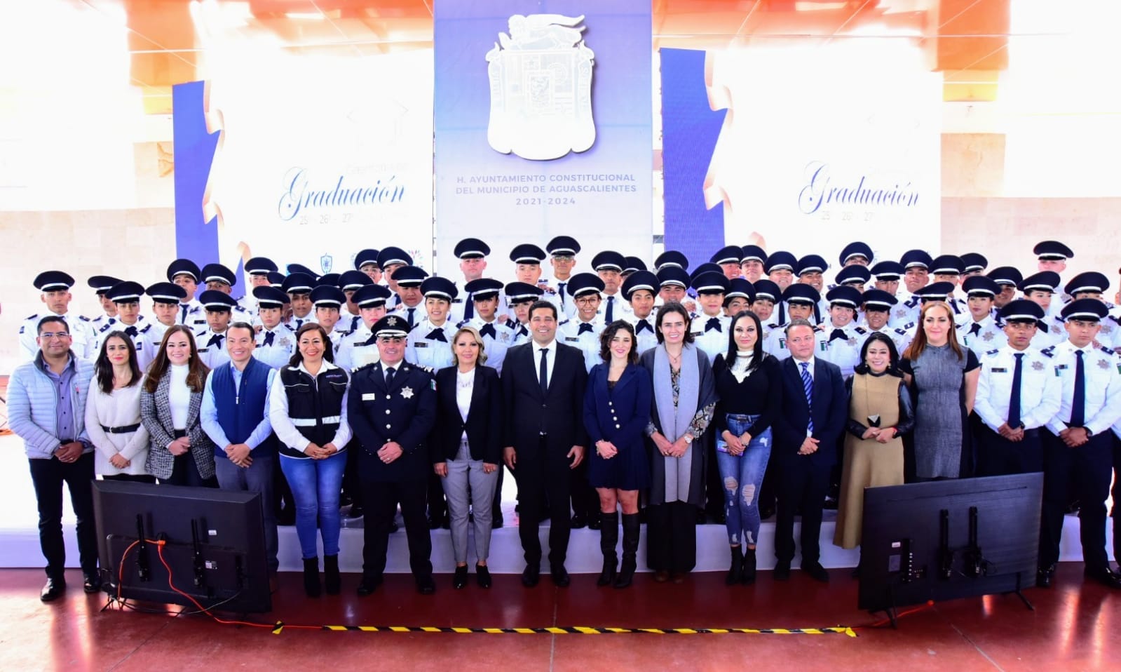 Con el propósito de reforzar las fuerzas policiales, además de contribuir al bienestar y tranquilidad de las familias que habitan en la capital, el Municipio de Aguascalientes, a través de la Secretaría de Seguridad Pública Municipal (SSPM), realizó la ceremonia de graduación de 59 nuevos policías preventivos.