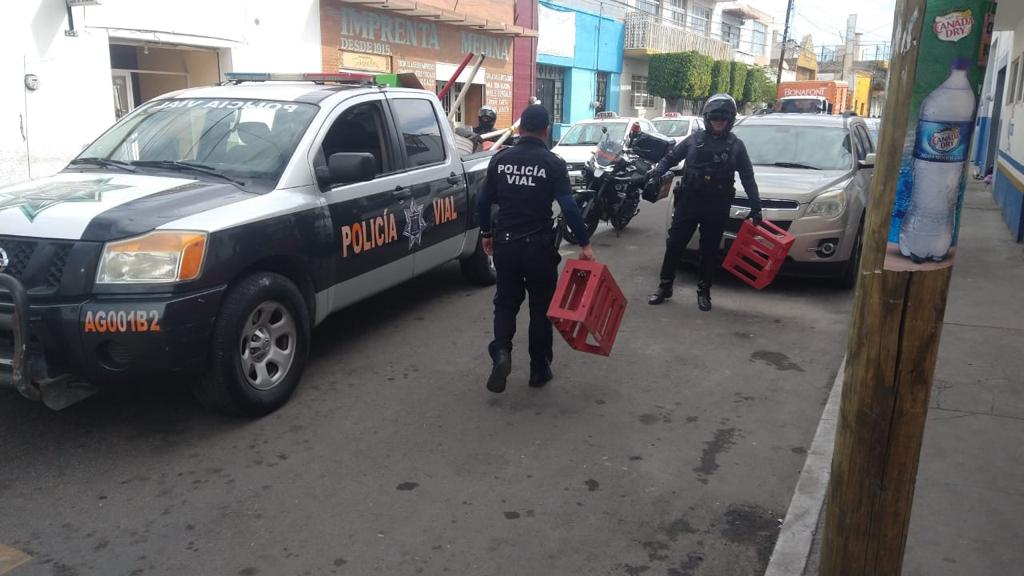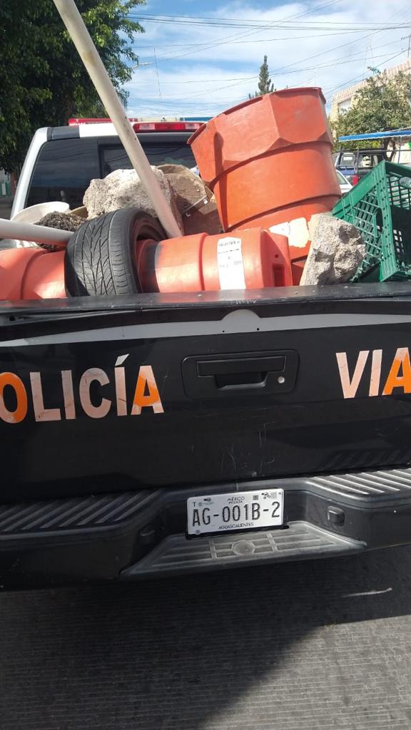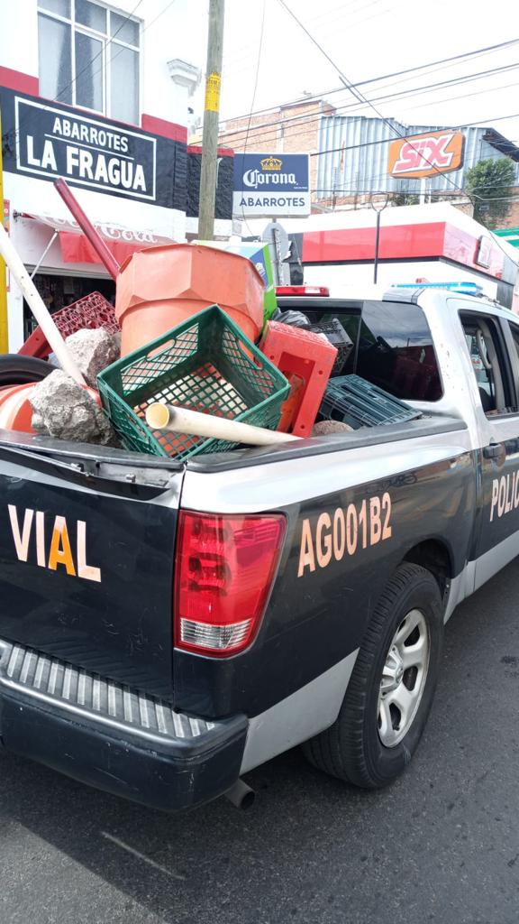 La Secretaría de Seguridad Pública Municipal de Aguascalientes a través de la Dirección de Movilidad implementa el operativo «Barredora” para evitar el apartado de estacionamientos en calles de la zona centro principalmente, asegurando diversos objetos.