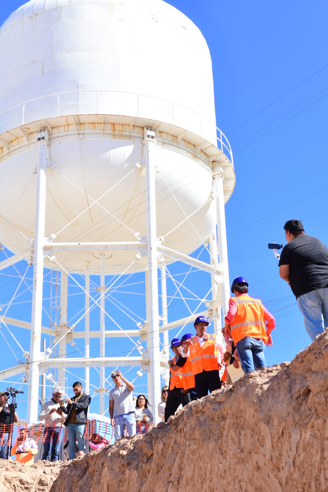 Ante vecinos de esta zona y medios de comunicación, el presidente municipal, dijo que este mega tanque de 12 metros de alto y 20 de diámetro, tendrá una gran capacidad de almacenamiento similar a 5 mil tinacos de mil litros, para distribuir estratégicamente el agua y tener una mejor calidad química gracias a redes presurizadas.