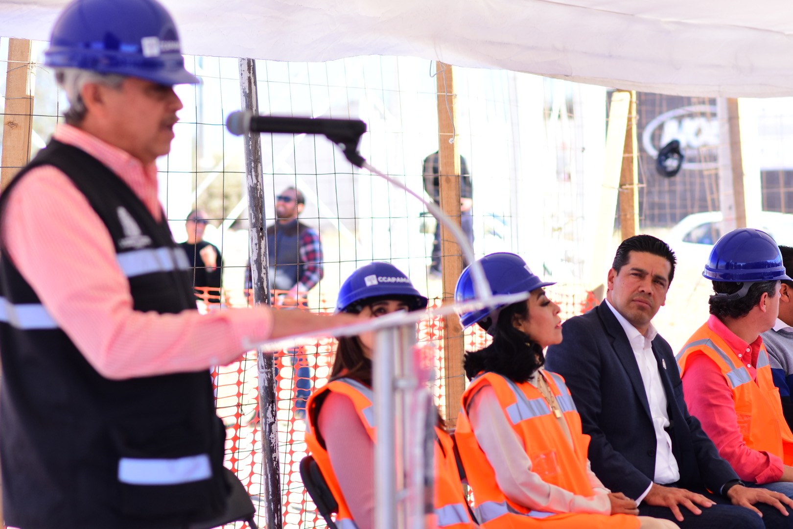 Se contó con la presencia en este evento del regidor presidente de la Comisión de Agua Potable, Alcantarillado y Saneamiento, Luis Armando Salazar Mora, de la regidora Ma. Dolores Verdín Almanza, así como el gerente general adjunto de VEOLIA, Leonardo Estrada García.