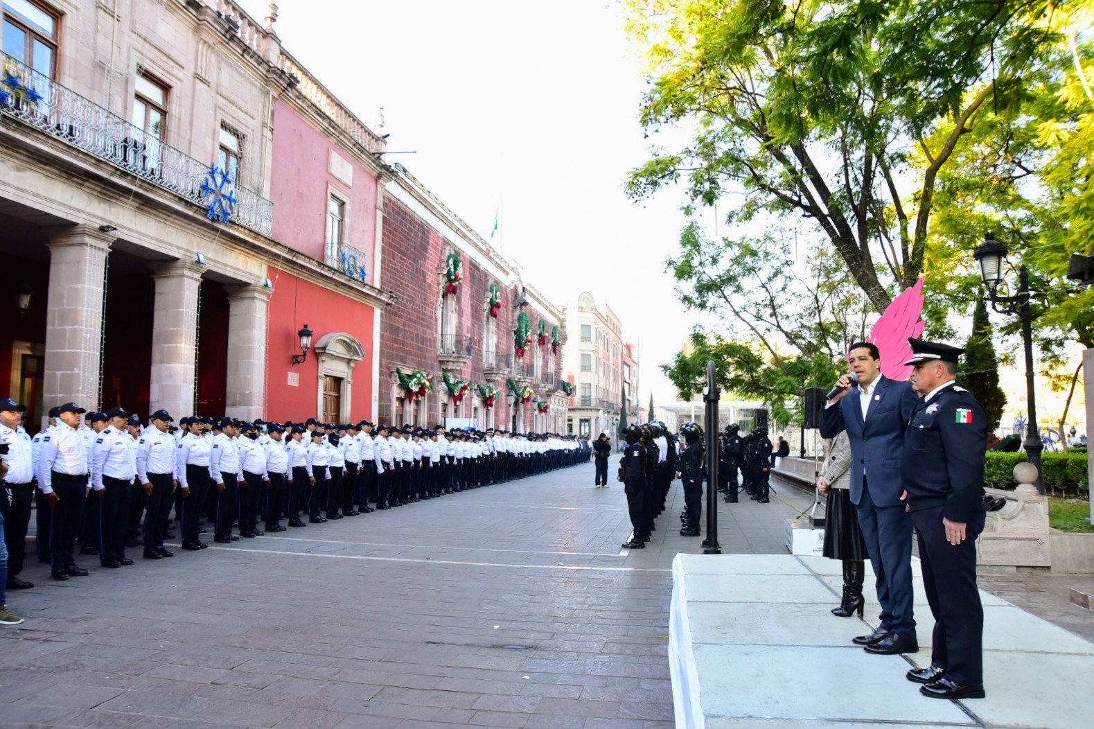 Acompañado por el secretario de Seguridad Pública Municipal, Antonio Martínez Romo, Leonardo Montañez reconoció el sentido del deber que han demostrado todos los integrantes de la corporación; pidió a los 600 elementos que acudieron al pase de lista, refrendar su compromiso con la ciudadanía, con Aguascalientes y con sus familias.