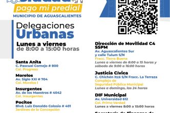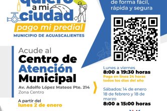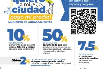 También se invita a pagar a través de la plataforma e-pagos en el portal de internet del Municipio www.ags.gob.mx, en donde se puede obtener un 2 por ciento de descuento adicional al pagar con tarjeta de débito y realizar el trámite de forma fácil y segura, las 24 horas, los 365 días del año desde la comodidad del hogar u oficina y una vez efectuado el pago se hará llegar al correo electrónico que el usuario registre, su factura o comprobante de pago CFDI o XML validado por el SAT.