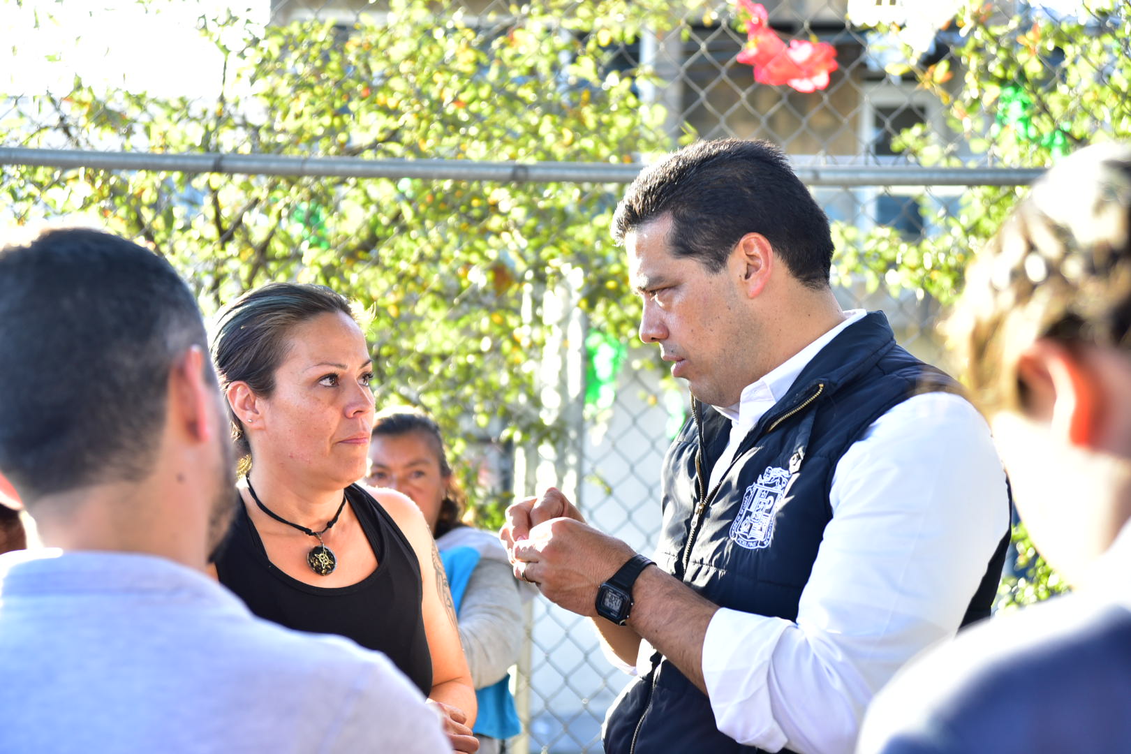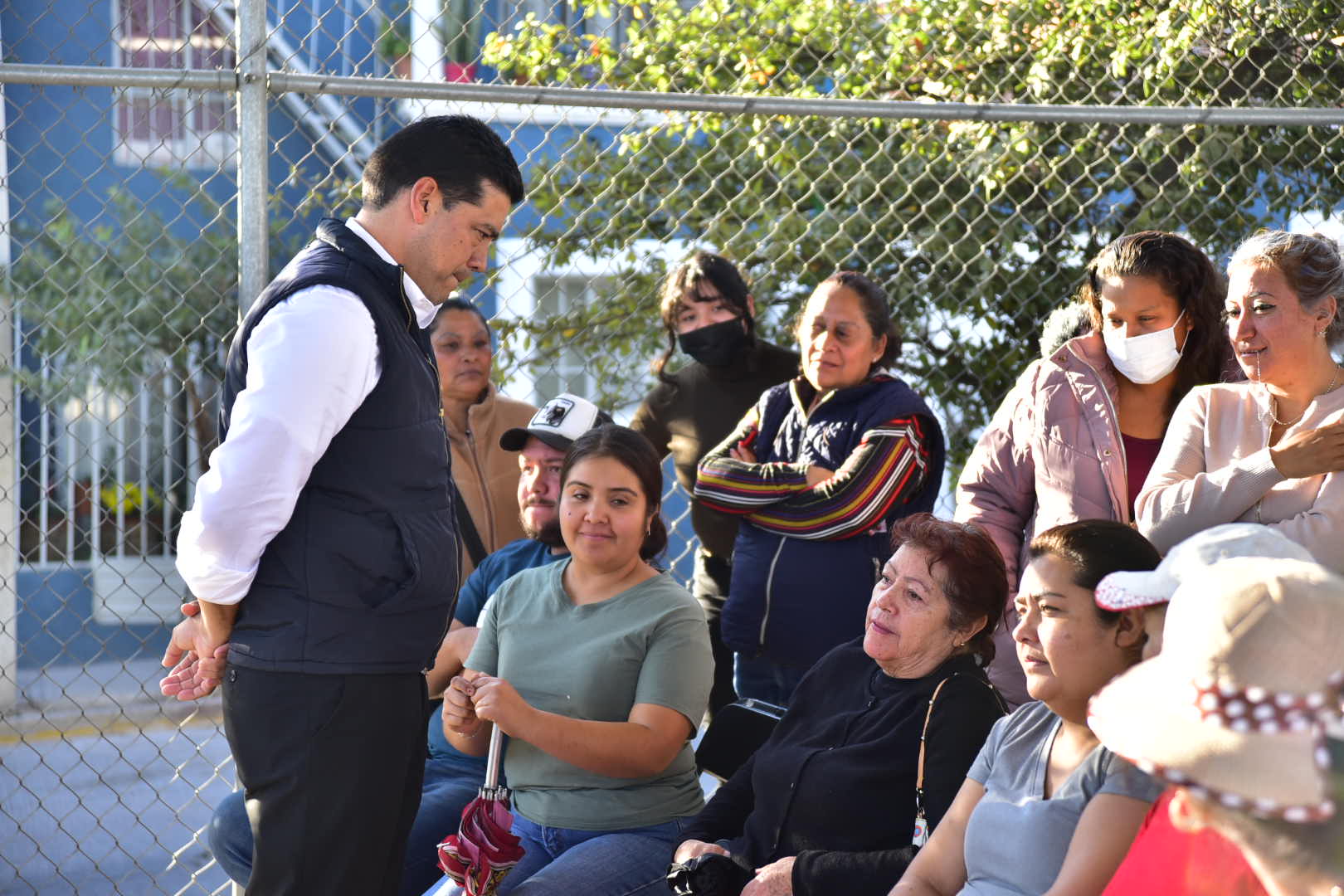 Para seguir manteniendo el acercamiento positivo con la población y continuar ofreciendo una mejor calidad de vida para todos y todas, el presidente municipal, Leonardo Montañez, llevó a cabo una reunión en avenida Poliducto y avenida San Gabriel en donde con apoyo de titulares de las diferentes dependencias municipales, priorizaron, escucharon y atendieron las diferentes problemáticas y necesidades planteadas por los vecinos de fraccionamientos aledaños a Línea Verde.