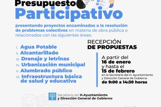 CONVOCA MUNICIPIO A LA CIUDADANÍA A PRESENTAR PROYECTOS A SER INCLUIDOS EN EL PRESUPUESTO PARTICIPATIVO