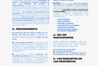 Para mayor información se puede consultar la convocatoria en las redes sociales del Municipio de Aguascalientes, los diarios de mayor circulación y la página https://ags.gob.mx/publicidad/Presupuesto%20Participativo_Convocatoria.pdf