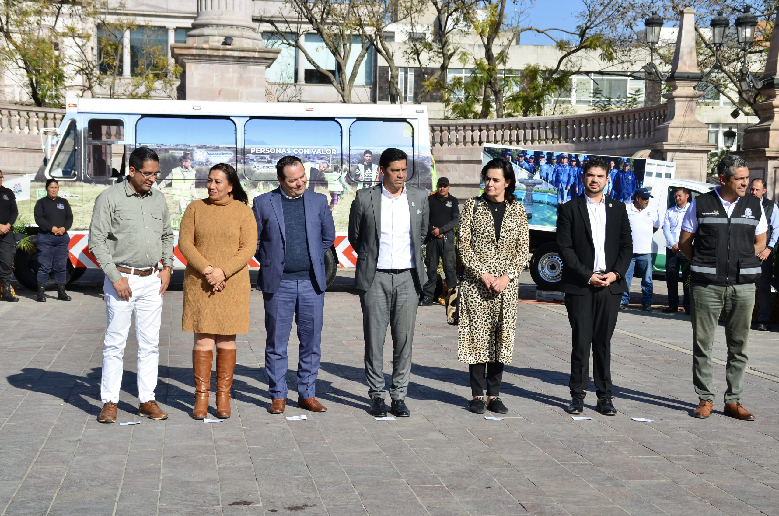 Con el propósito de seguir otorgando servicios públicos de calidad en la ciudad, el Municipio de Aguascalientes realizó la entrega de 5 nuevas unidades de trabajo para la Secretaría de Servicio Públicos Municipales (SSP) y un camión para la Dirección de Juzgados Cívicos para Servicio Comunitario, a fin de reforzar el trabajo que desempeñan estas áreas operativas y en beneficio de la ciudadanía.