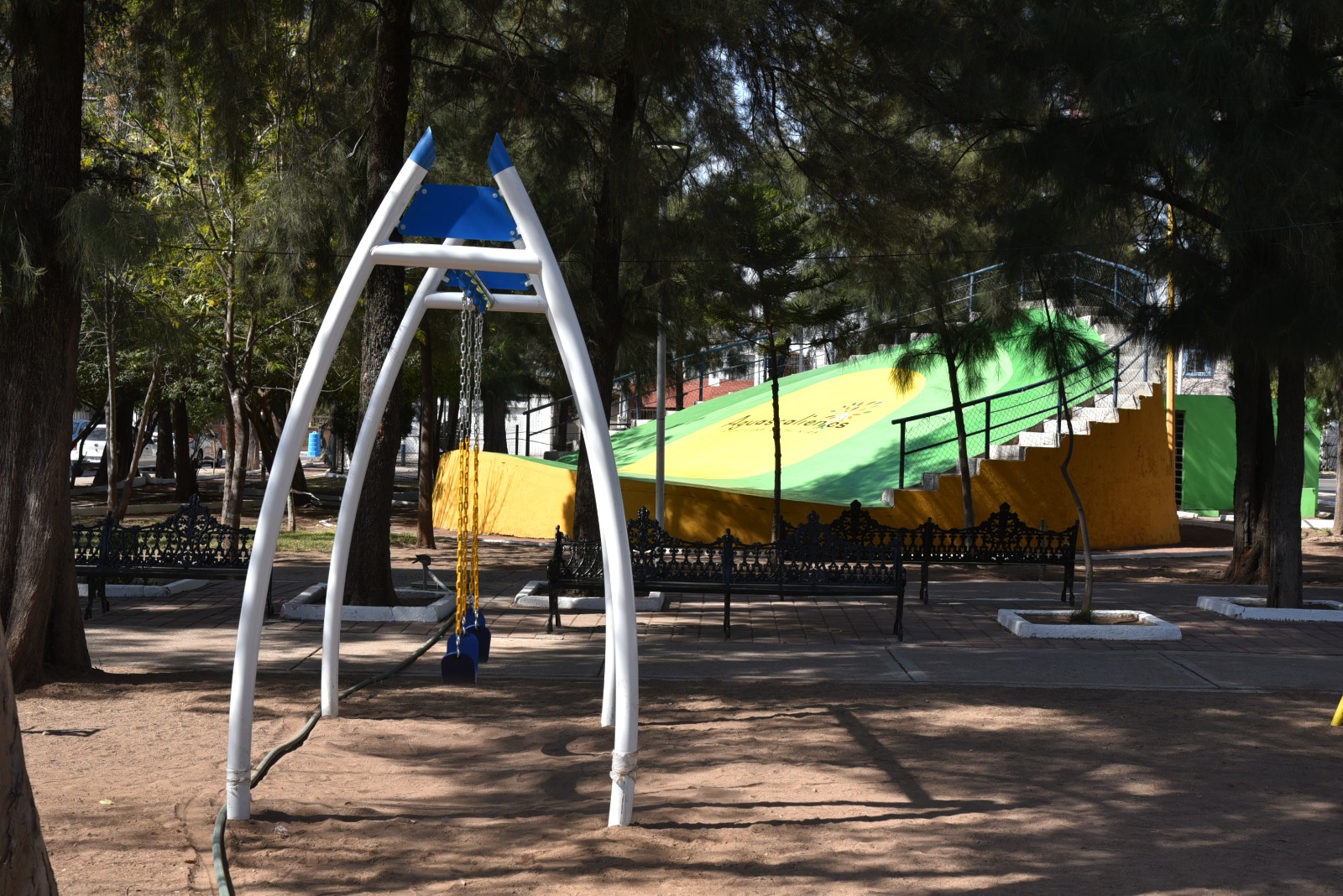 El titular de la Secretaría de Servicios Públicos (SSP), Carlos España Martínez, mencionó que se llevaron a cabo tareas de rehabilitación en los parques de fraccionamientos como Versalles II, Moderno, Modelo, La Salud, El Dorado, La Soledad y Ojocaliente.