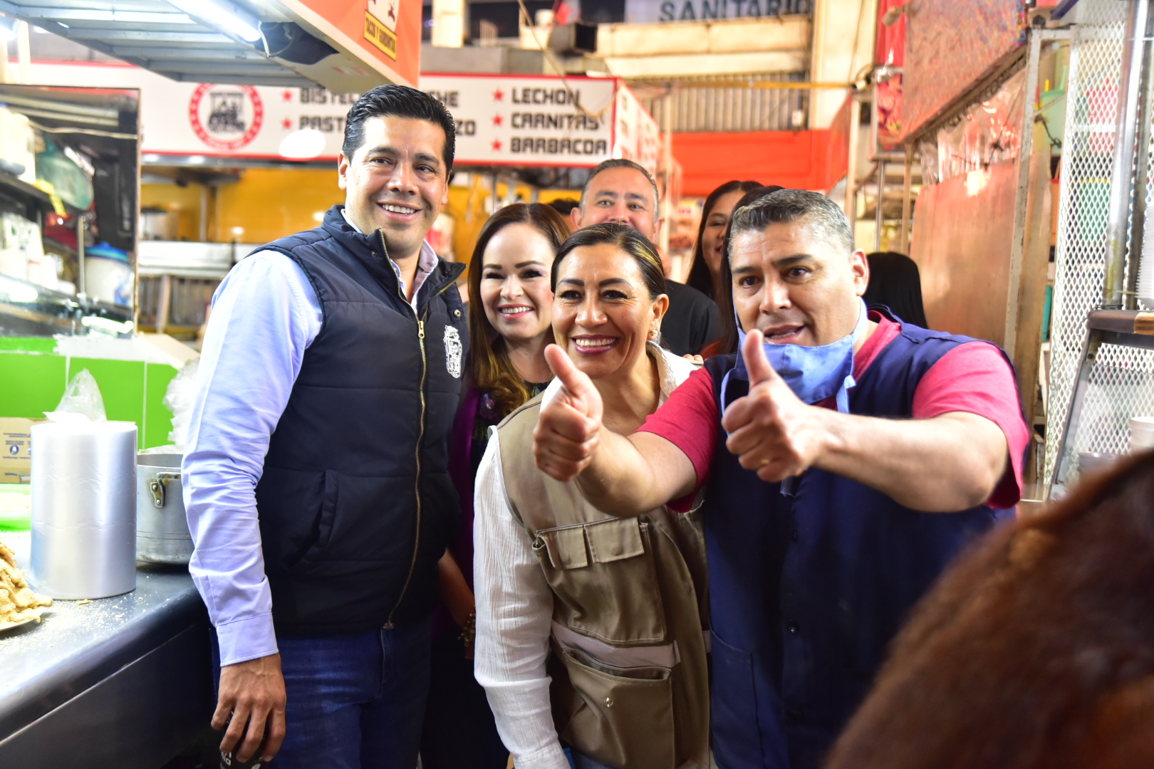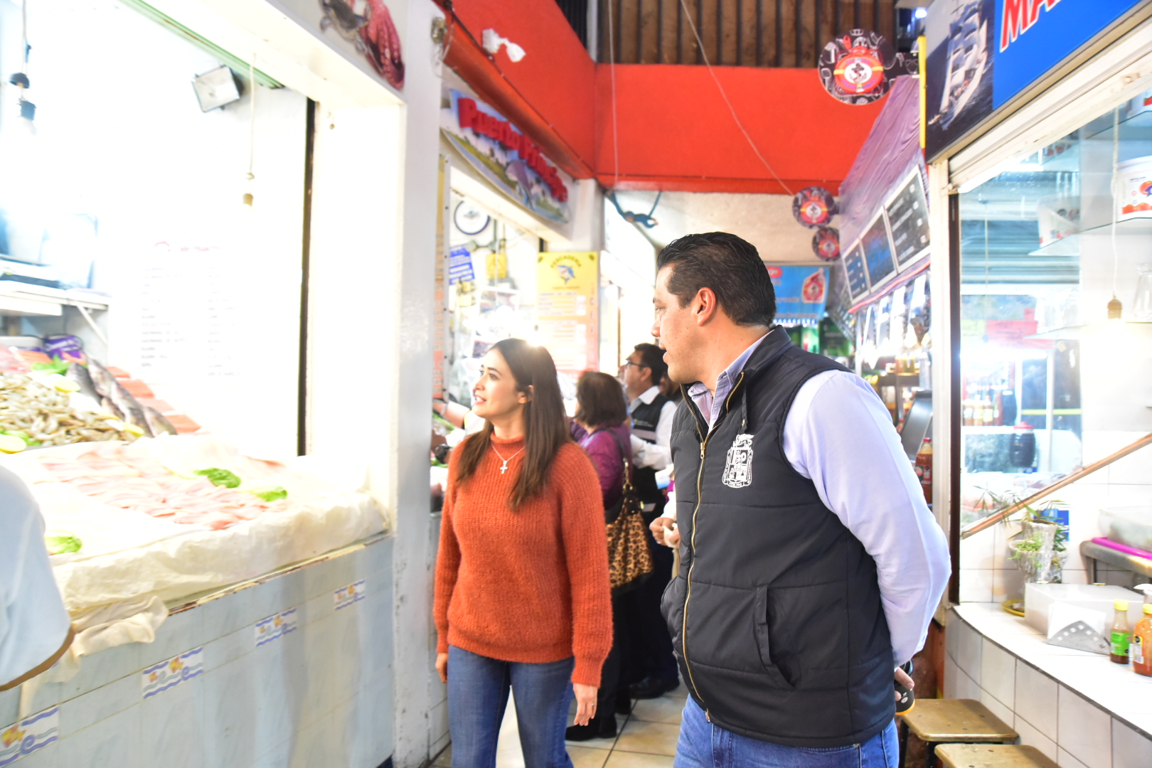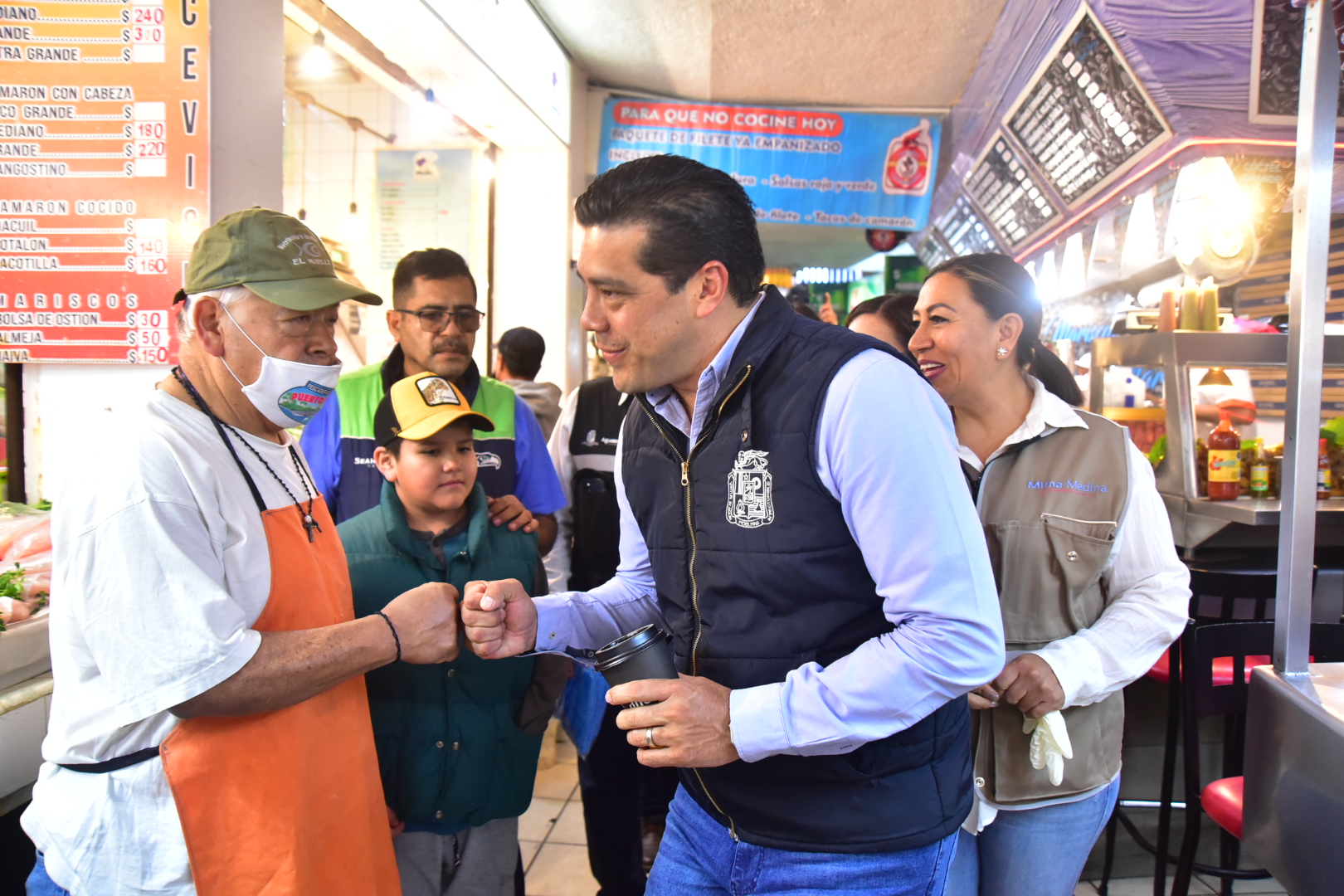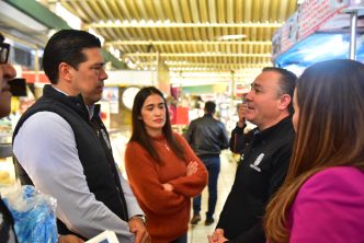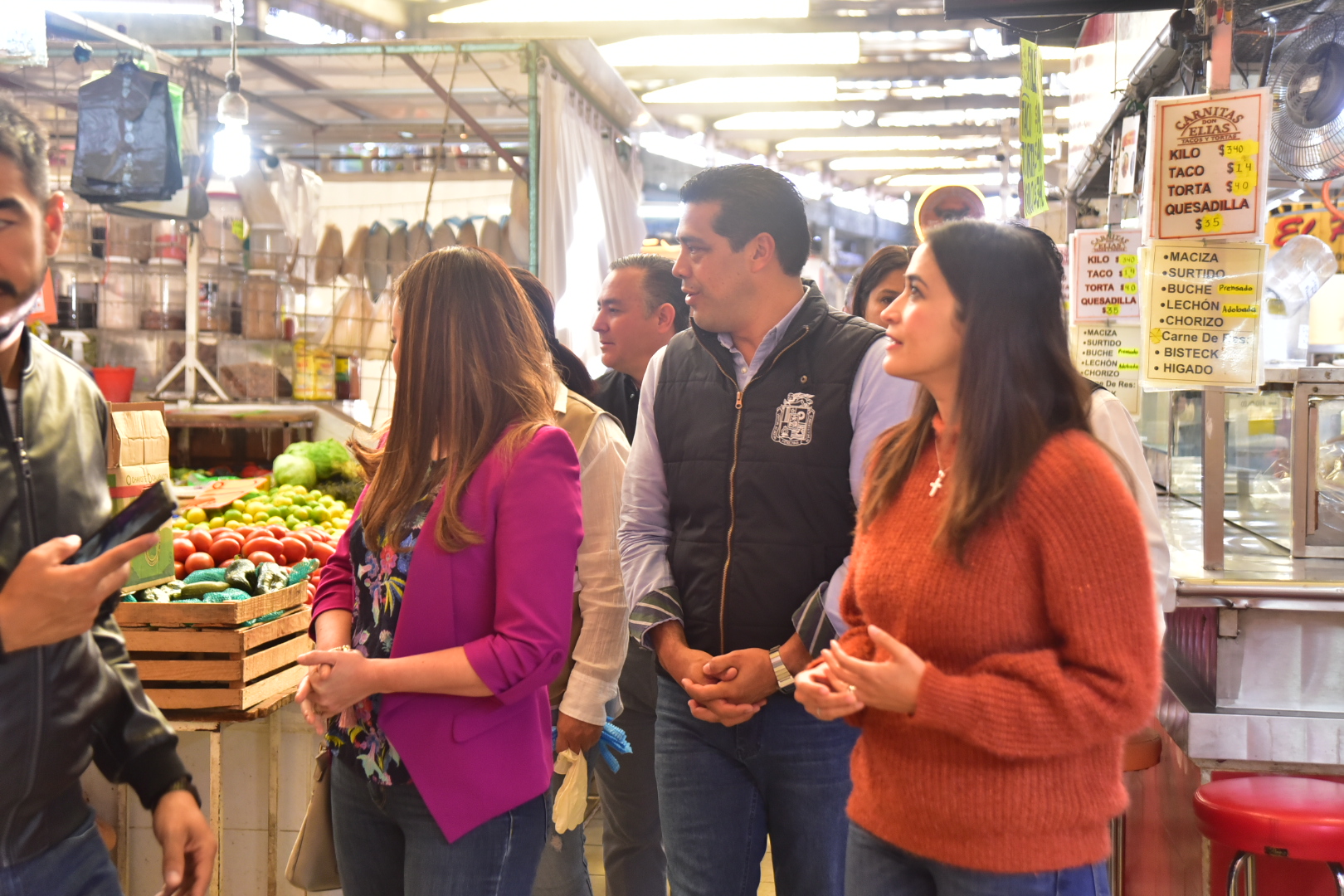 Leo Montañez encabezó un recorrido con la síndica de Hacienda, Martha González Estrada y las regidoras Mirna Medina Ruvalcaba, Citlalli Rodríguez González y María Dolores Verdín Almanza, en donde dialogó directamente con la ciudadanía que acude a realizar sus compras y con los locatarios de estos tradicionales espacios del Centro Histórico, con quienes refrendó lazos de colaboración para ofrecer atención y servicios de calidad.