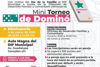 Además se realizará un torneo de dominó en las instalaciones del Aula Magna del DIF Municipal, en donde se vivirán emocionantes momentos y se premiará a las dos parejas ganadoras.