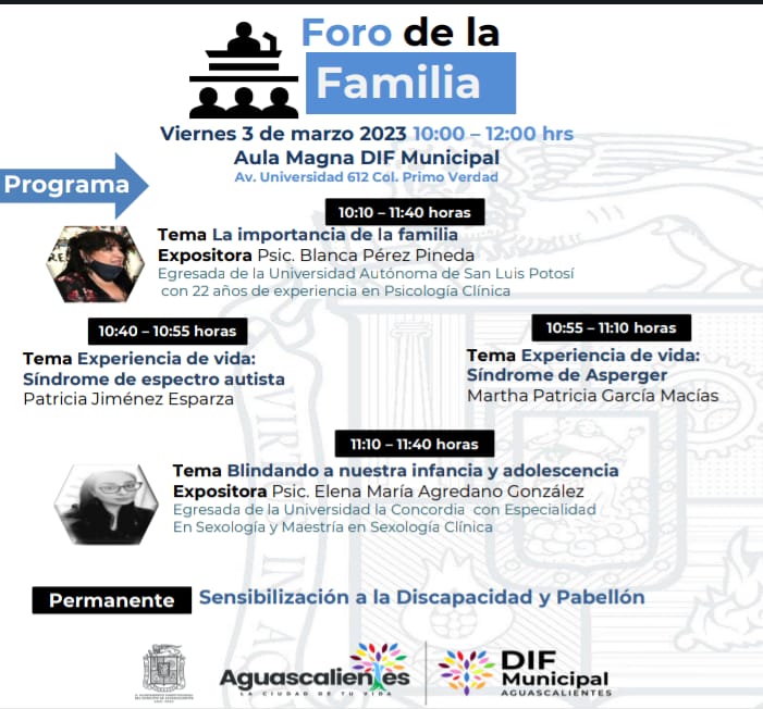 Humberto Montero expuso que además este viernes 3 de marzo se llevará a cabo un foro en el Aula Magna de esta institución y se contará con la participación de dos expositoras que impartirán importantes temas para el desarrollo como: La importancia de la familia, Blindando nuestra infancia y adolescencia, así como Síndrome de Asperger y Síndrome de Espectro Autista; comentó que además se instalará el pabellón de discapacidad y sensibilización para concientizar y sensibilizar a las personas sobre la inclusión y cultura de la discapacidad.