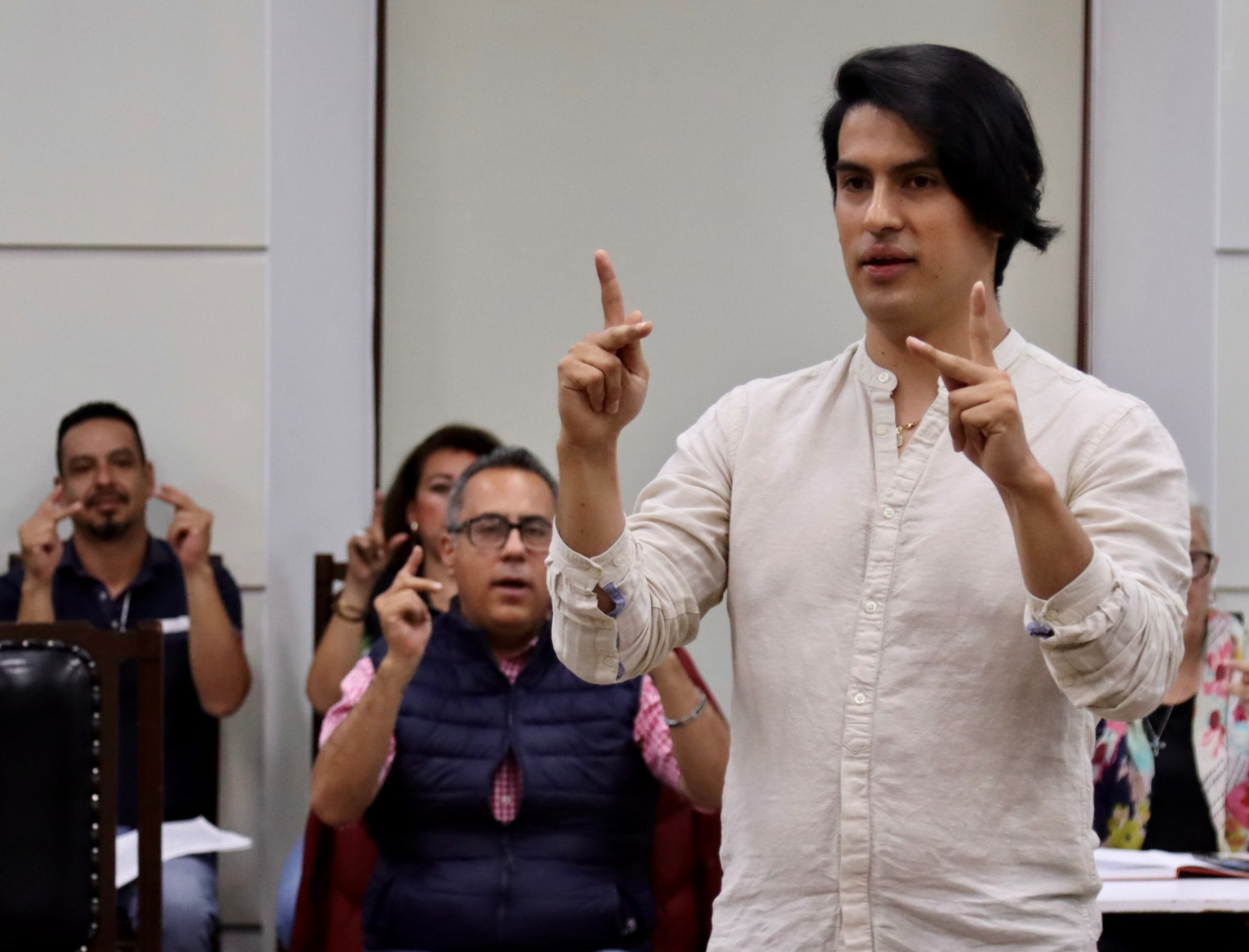 Expuso que se abordarán diversos temas como: Qué es la discapacidad auditiva, abecedario, días de la semana, meses, números, saludos, integrantes de la familia, colores, verbos emociones y estructura de LSM, con lo cual las y los trabajadores reforzarán sus conocimientos en la materia para poder comunicarse con mayor fluidez con este sector social.