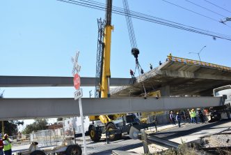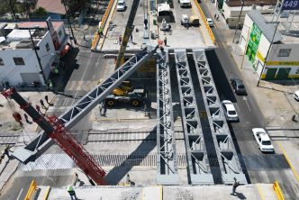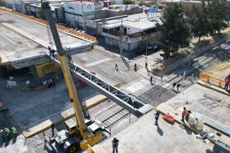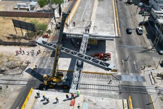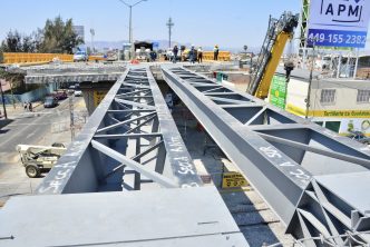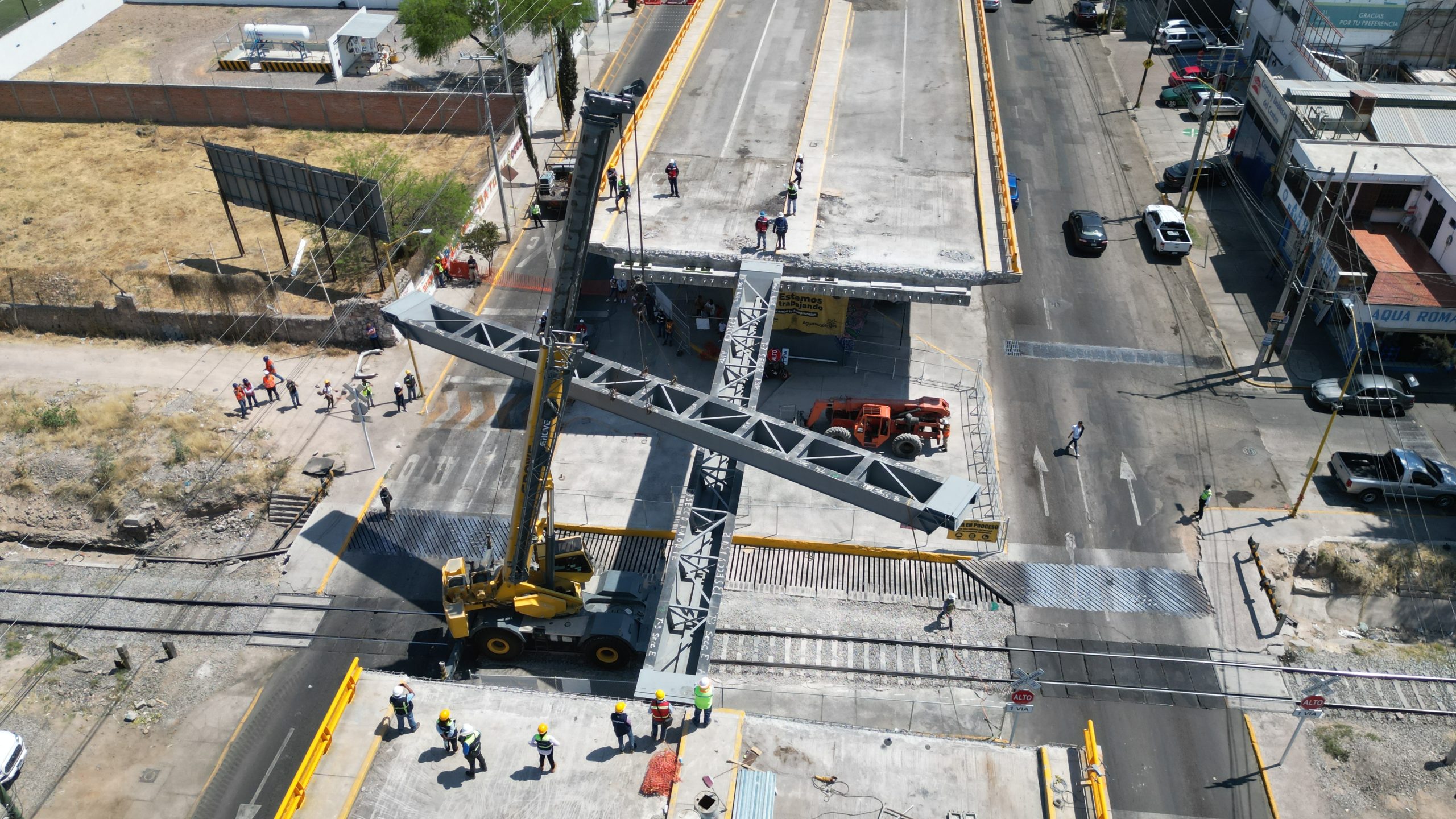 Luego de que la empresa Ferromex otorgara el permiso de trabajo seguro, la Presidencia Municipal de Aguascalientes, a través de la Secretaría de Obras Públicas Municipales (SOPMA), inició, la mañana de este domingo, la colocación de 5 nuevas trabes de acero en el puente vehicular de la colonia México, las cuales permitirán un mejor y más rápido desplazamiento para los vehículos que atraviesen por la zona.