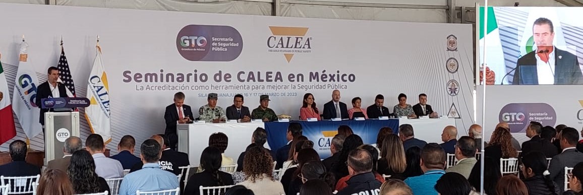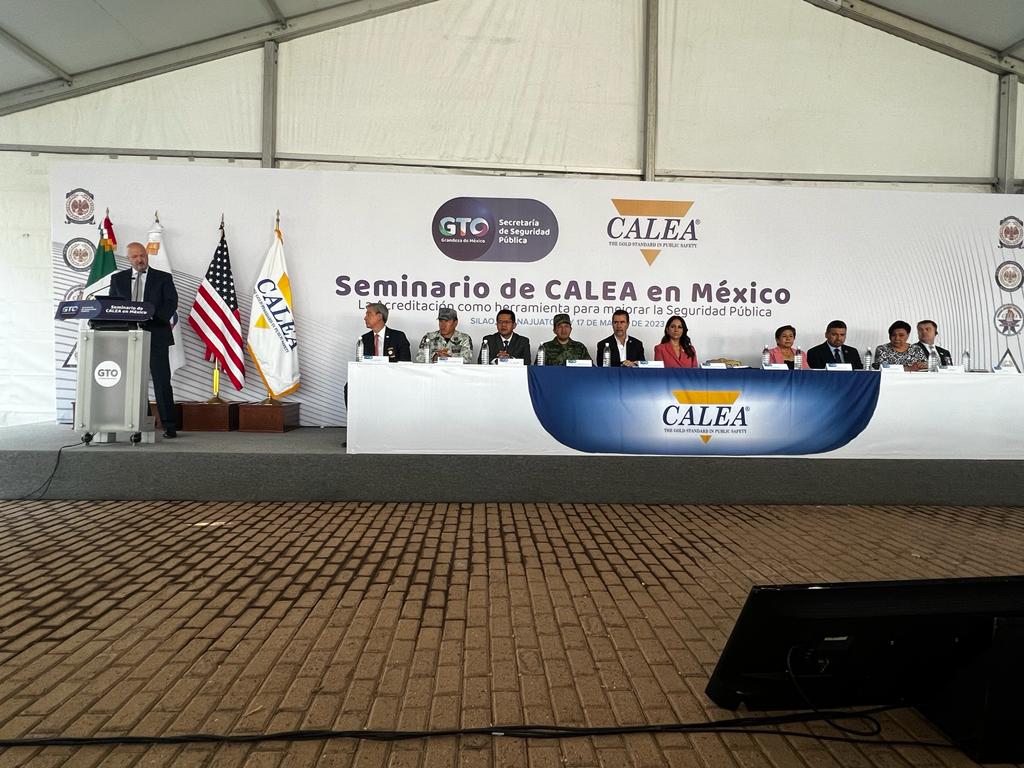 El Seminario Regional CALEA se realizó con la presencia del director de CALEA en México, Héctor López Santillana; el coordinador de la Guardia Nacional en Guanajuato, José Felipe Andrade; el diputado Rolando Fortino Alcántar, representante del H. Congreso del Estado de Guanajuato; el jefe del Estado Mayor de la 16ª Zona Militar, Vicente Dimayuga; la secretaria de Gobierno de Guanajuato, Libia Dennise García y el director ejecutivo de CALEA, W. Craig Hartley.