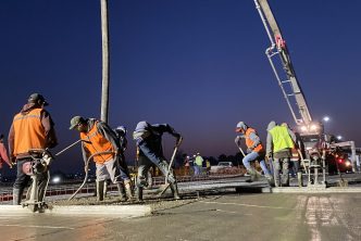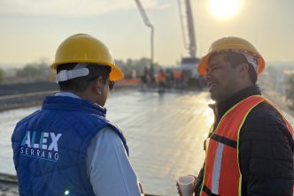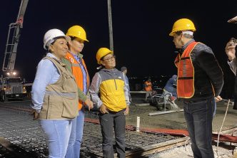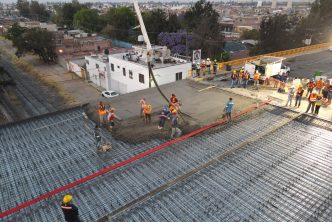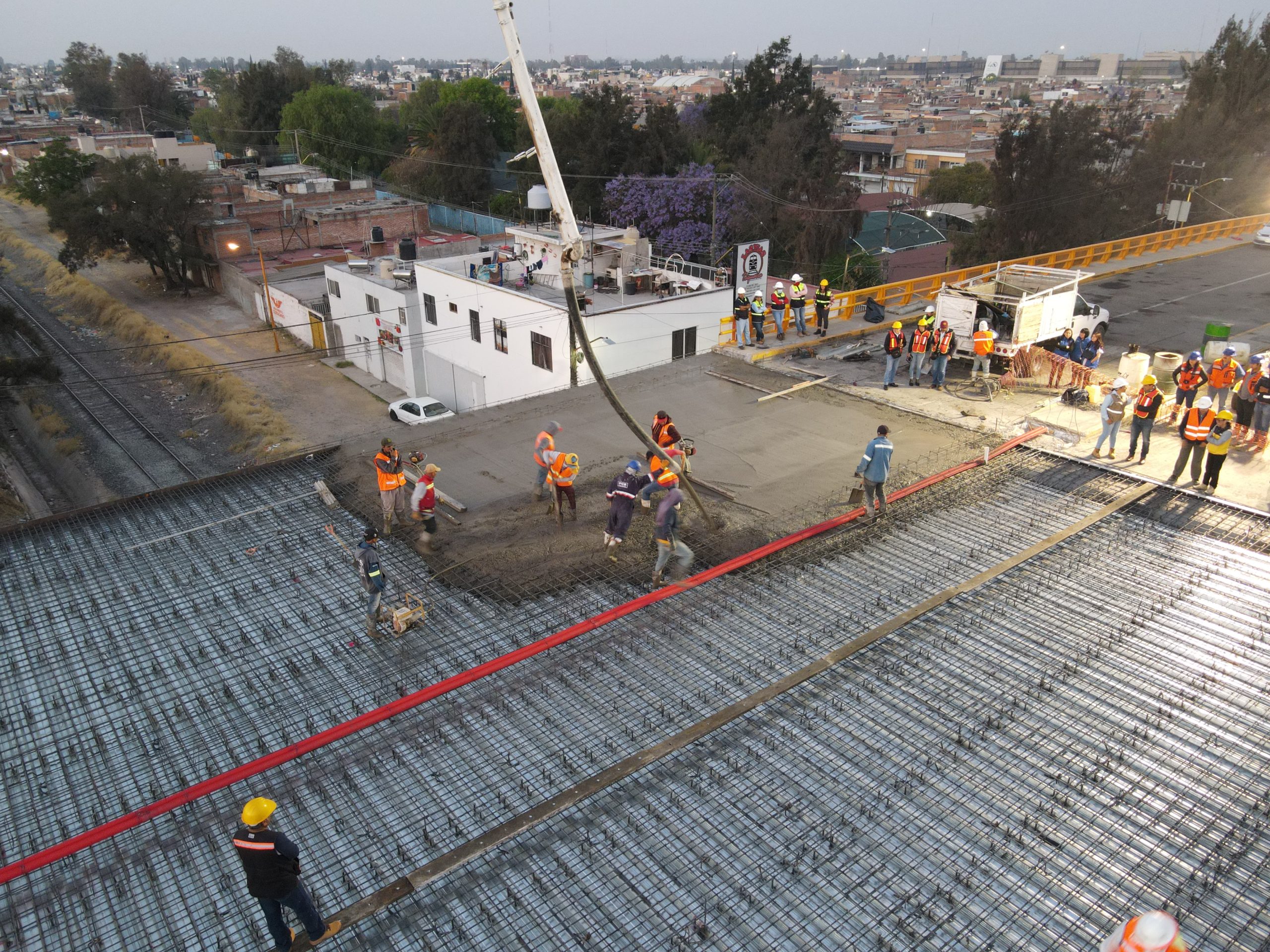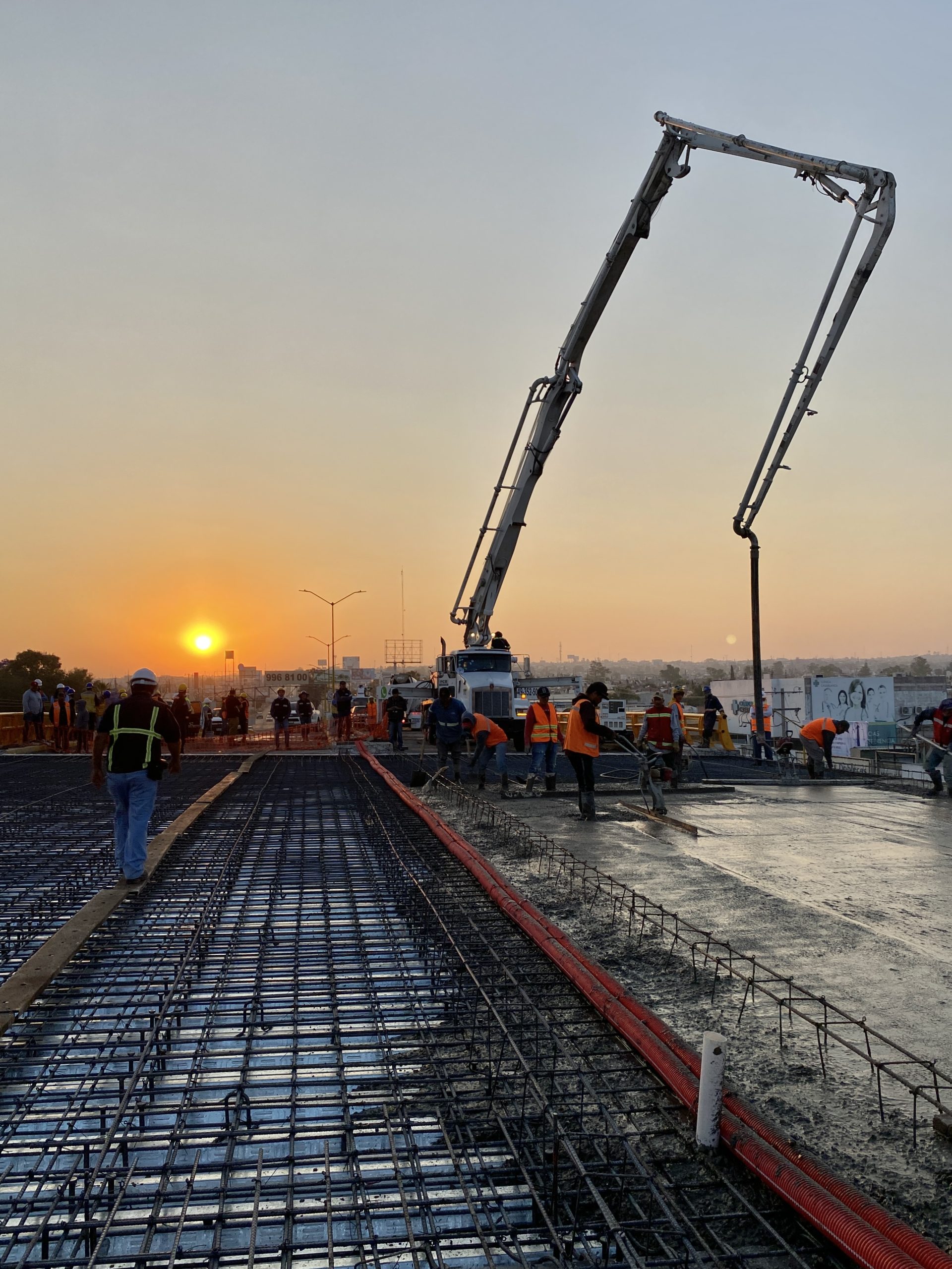 La mañana de este domingo, el presidente municipal, Leo Montañez constató los trabajos que realiza la Secretaría de Obras Públicas Municipales (Sopma) en el colado de la losa superior del puente de la colonia México, con lo cual inicia la etapa final de reconstrucción de esta infraestructura vial.