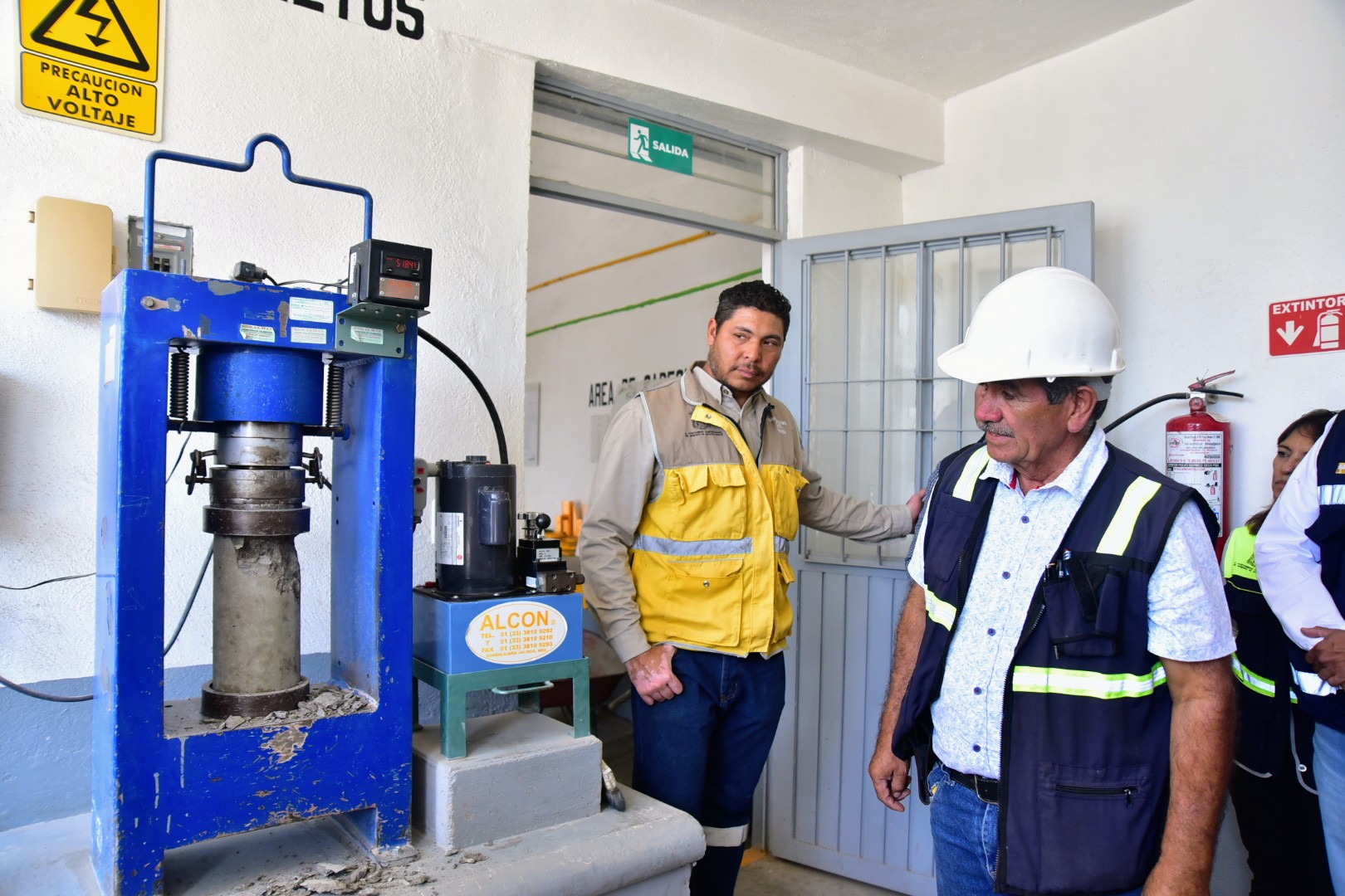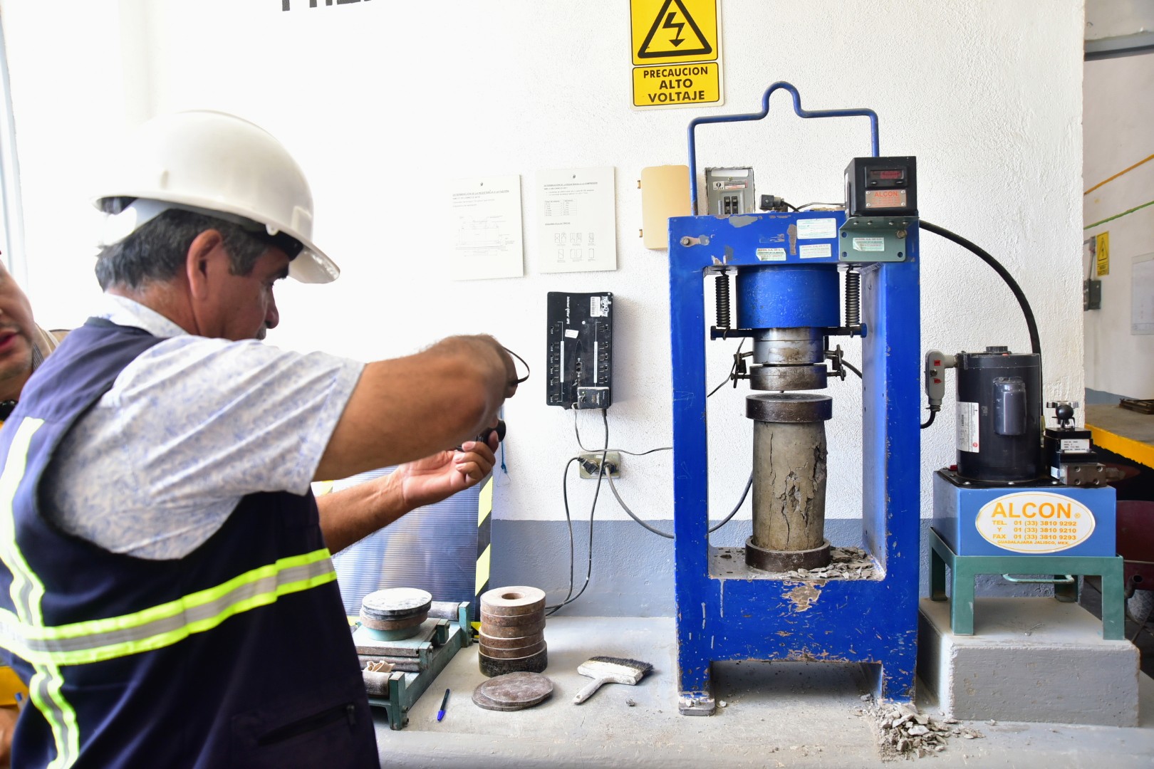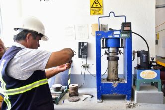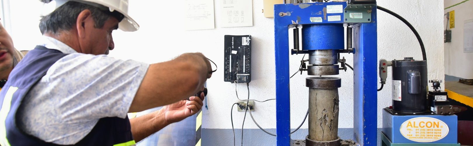 El Municipio de Aguascalientes, a través de la Secretaría de Obras Públicas Municipales (SOPMA), llevó a cabo la prueba de compresión a muestras de concreto que se utilizó en el colado de la losa central del puente vehicular ubicado en la colonia México. Con estas pruebas se determina la resistencia a la compresión simple del concreto endurecido para comprobar que el material es de calidad.