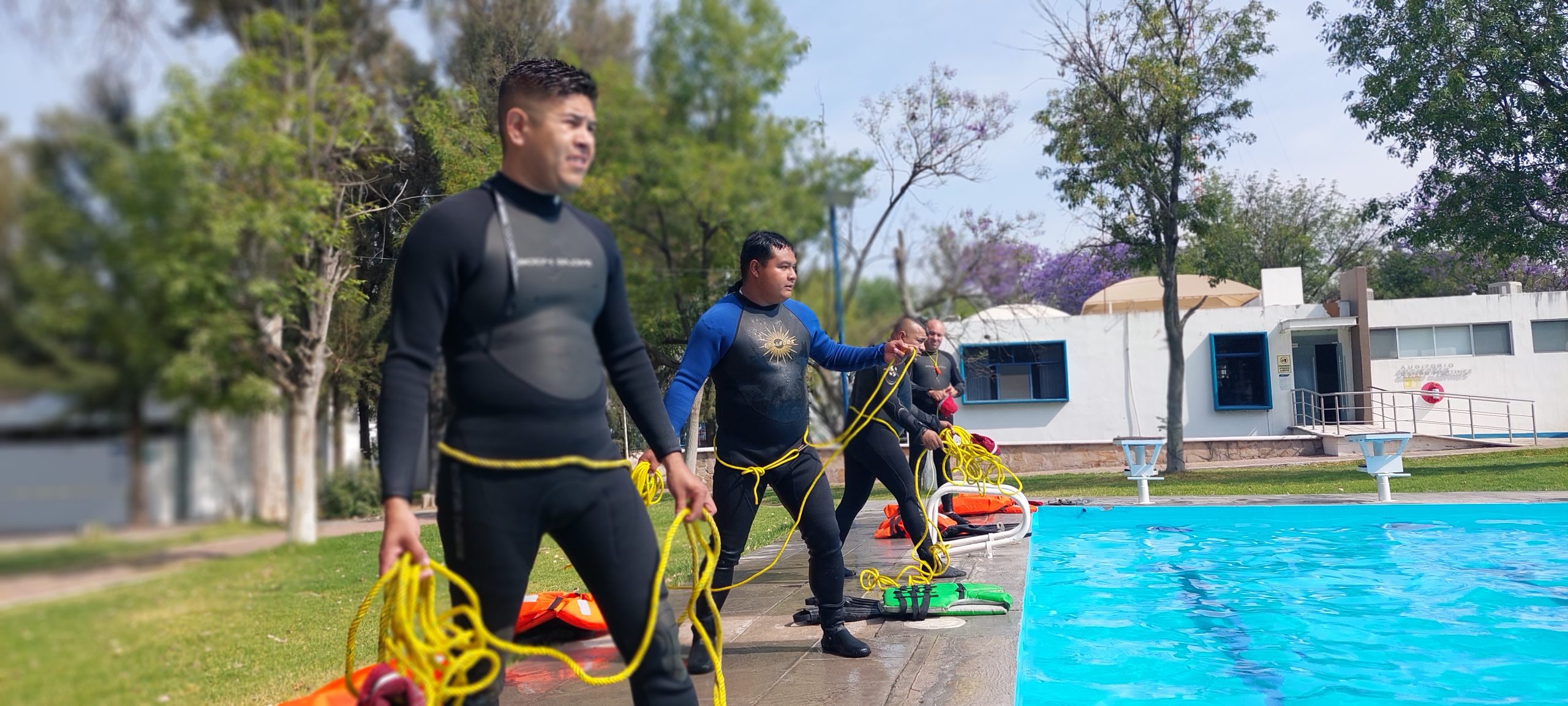 El titular de la dependencia José Gabino Vázquez Vega dio a conocer que la Sección de Rescate Acuático en los últimos años ha tenido una participación importante, contando con 14 elementos activos distribuidos en tres equipos que cubren turnos de 24 horas cada uno, quienes se capacitan diariamente para fortalecerse física y mentalmente para resistir las variantes o tipos de escenarios como presas, bordos, albercas y aljibes, entre otros.