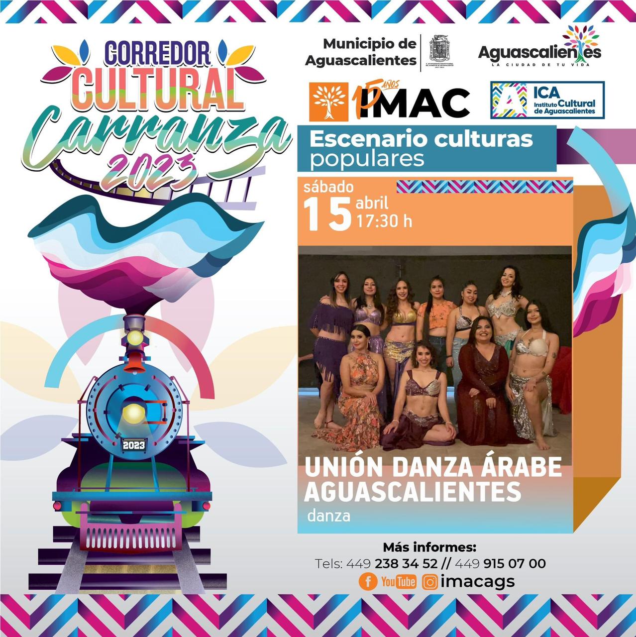 Por su parte el escenario de culturas populares arranca en punto de las 16:30 hrs con música regional de Karla Denisse, a las 17:30 hrs llega Unión Danza Árabe Aguascalientes y cerramos las presentaciones del escenario con Circo Luz y Fuego a las 18:30 hrs.