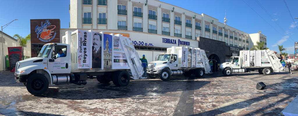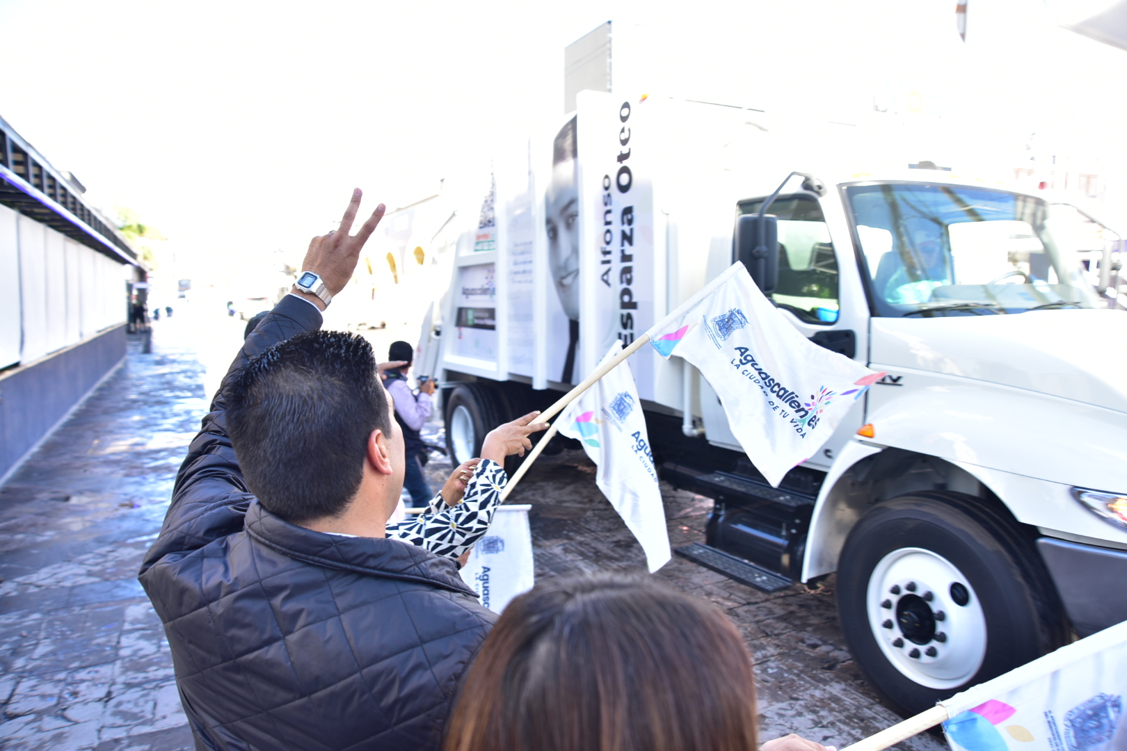 El presidente municipal, Leo Montañez, encabezó el banderazo de salida de tres nuevos camiones recolectores de basura, de 10 toneladas de capacidad cada uno, que servirán para continuar con los servicios de limpia de calidad y en beneficio de la población de Aguascalientes especialmente durante la Feria Nacional de San Marcos.