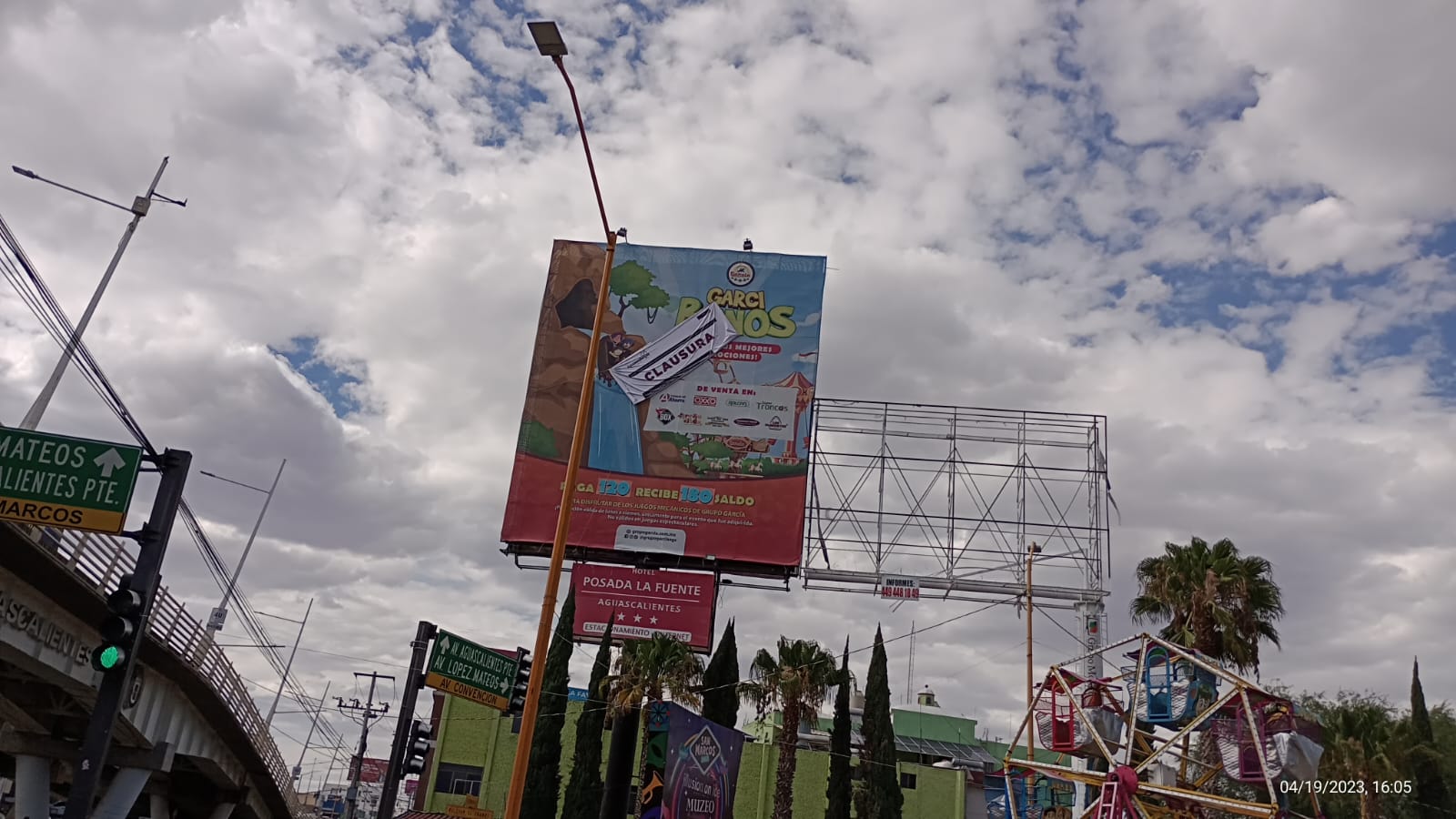 El titular de la dependencia, Jaime Gallo Camacho, informó que como resultado de estas revisiones y en lo que va de la Feria de San Marcos, la Dirección de Control Urbano, ha clausurado 7 anuncios espectaculares que se ubican dentro del perímetro de la verbena y que mantenían adeudos de años anteriores.