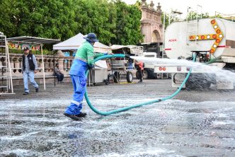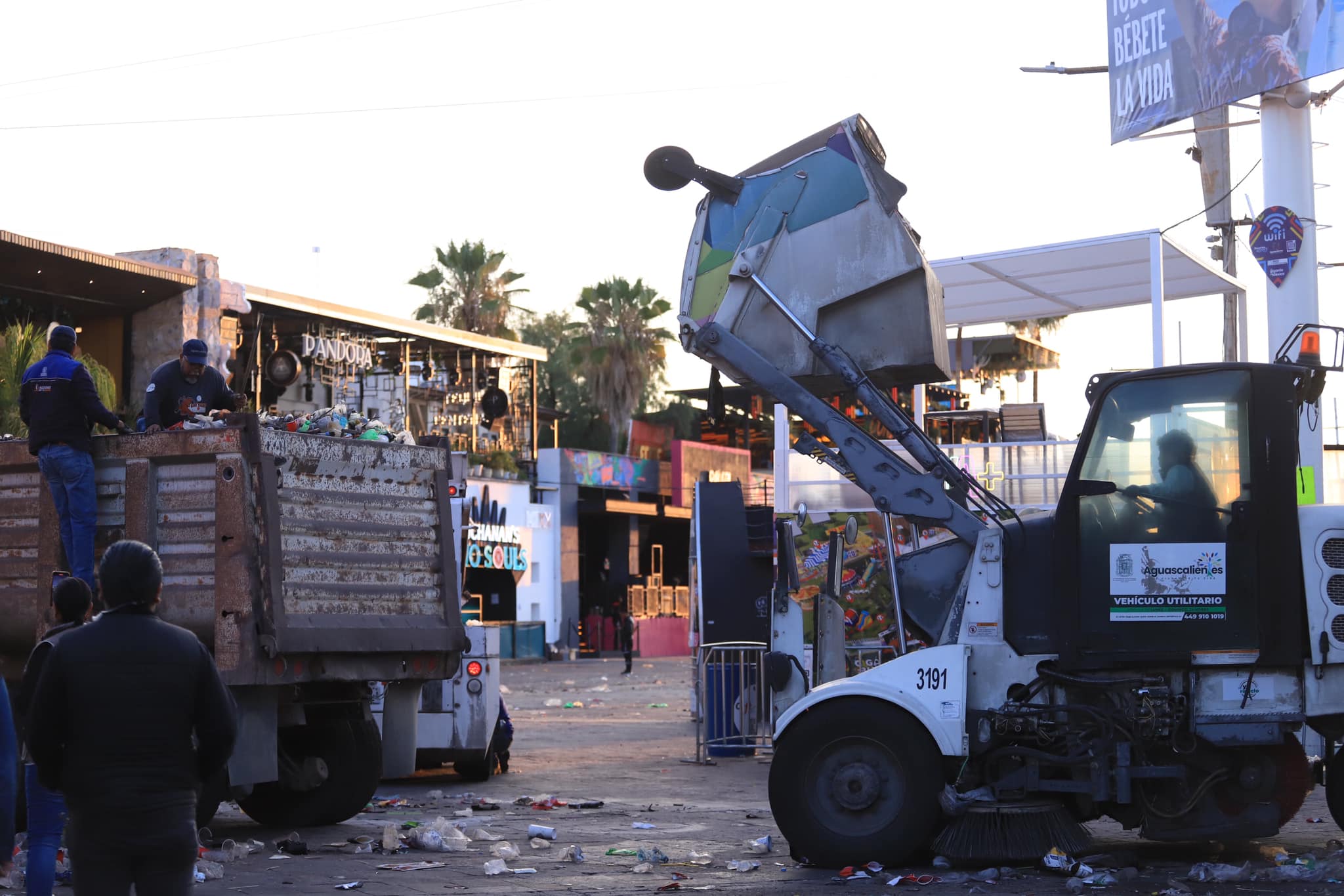 Destaca la participación de 350 trabajadores que a través de la Secretaría de Servicios Públicos (SSP), llevaron a cabo labores, incluso previas a la verbena, de limpia y aseo, alumbrado público y parques y jardines. Se reporta la recolección de mil 260 toneladas de desechos sólidos en el área ferial, con apoyo de 3 nuevos camiones compactadores y la realización de lavados profundos diariamente desde la explanada de San Marcos hasta la Plaza de Toros Monumental, en los que además participaron infractores del Servicio Comunitario que decidieron cubrir alguna falta administrativa por este trabajo.