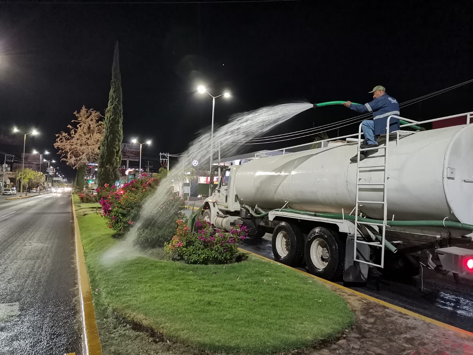 Destacó que a diario se realizan esfuerzos para que el riego de camellones se lleve a cabo en horas en las que el calor es menos intenso, para una correcta absorción del vital líquido, así como evitar obstruir el tránsito vehicular en horas pico.