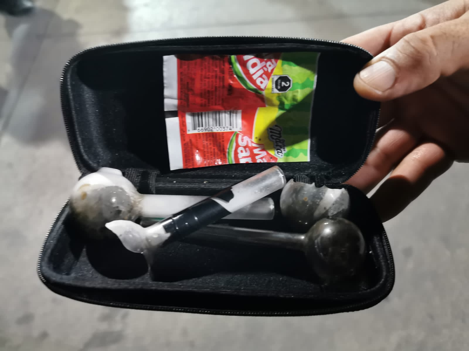 Se detuvo a personas que se encontraban realizando disturbios en la vía pública o bien portando dosis mínimas de sustancias al parecer ilícitas como piedra granulada con las características propias del cristal o hierba verde al parecer marihuana, además de que se les aseguraron algunas pipas de cristal e inclusive armas blancas.