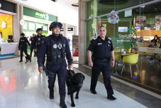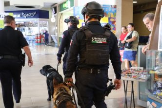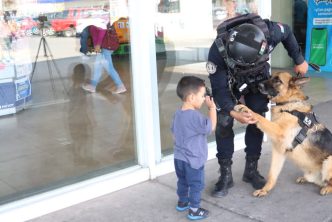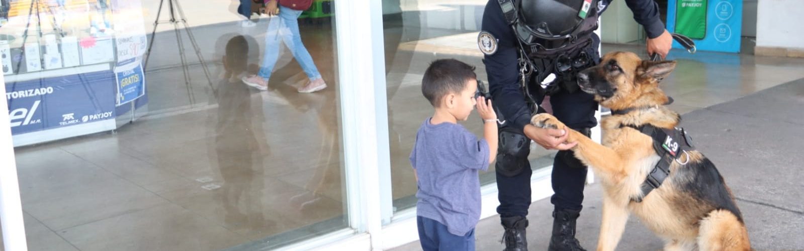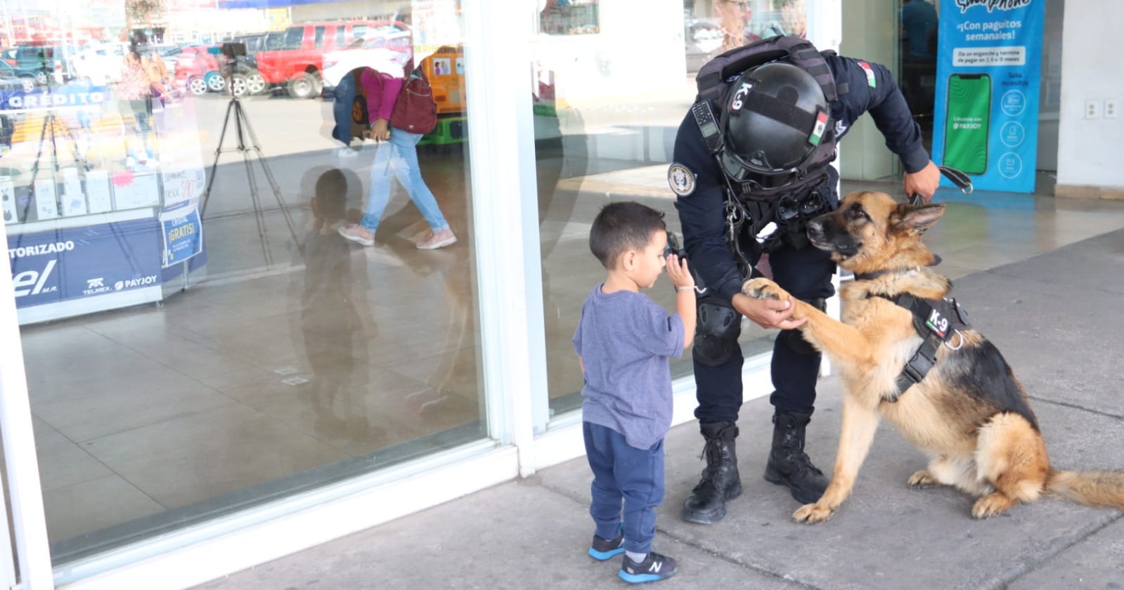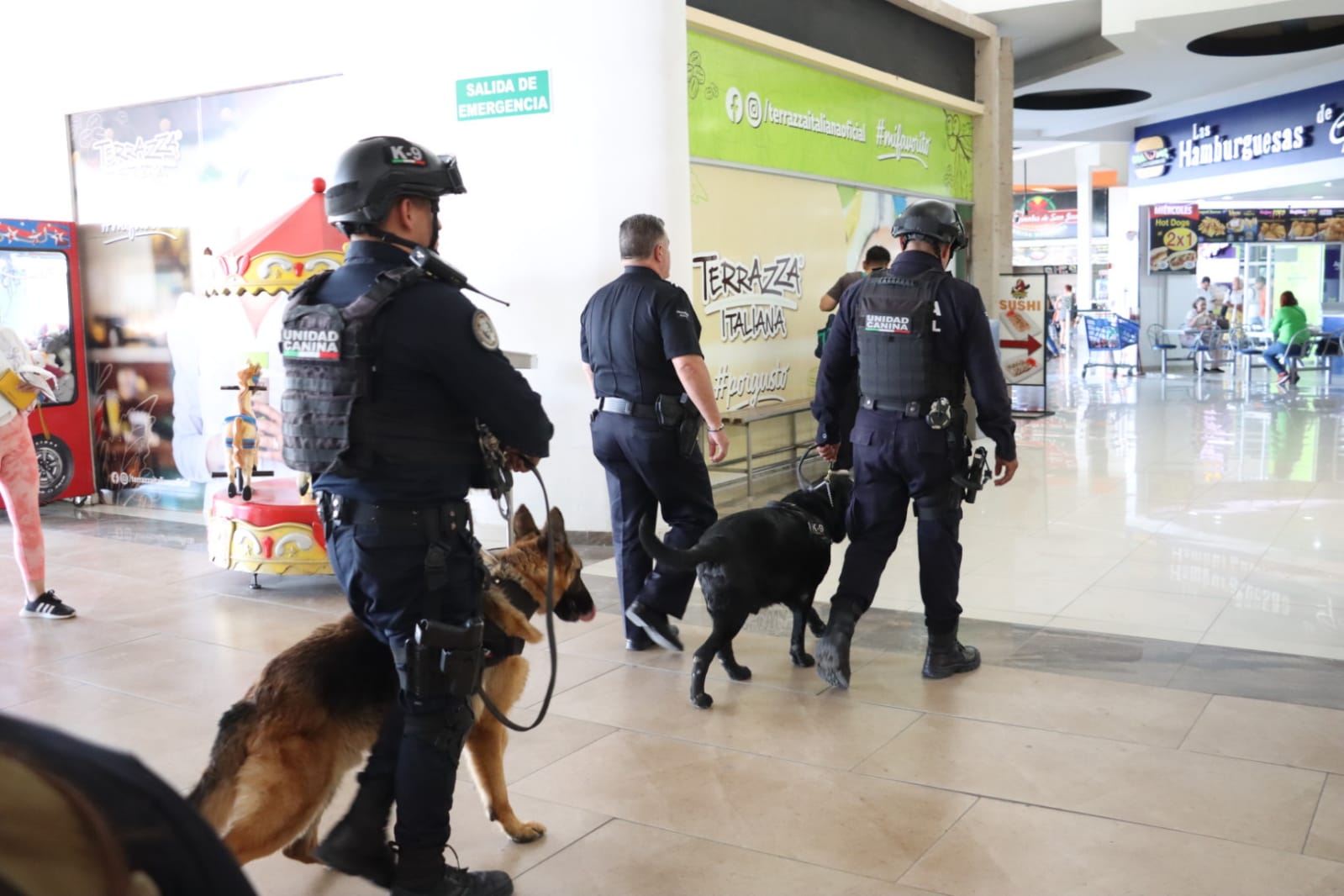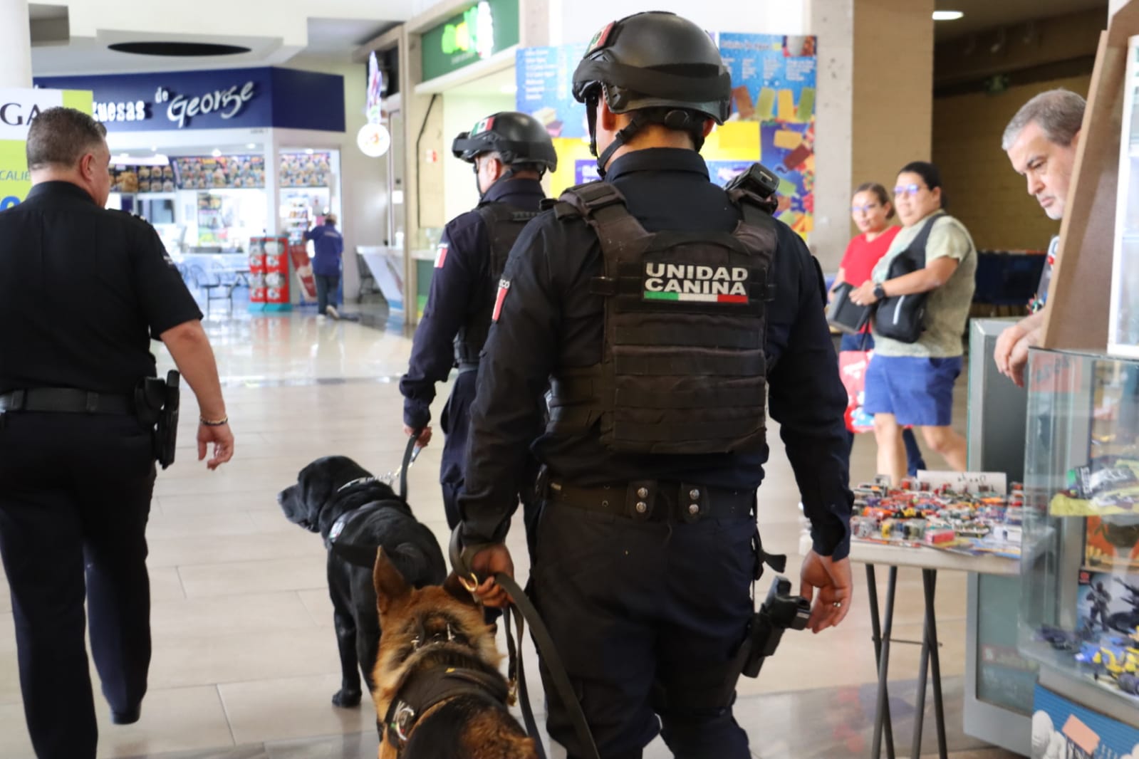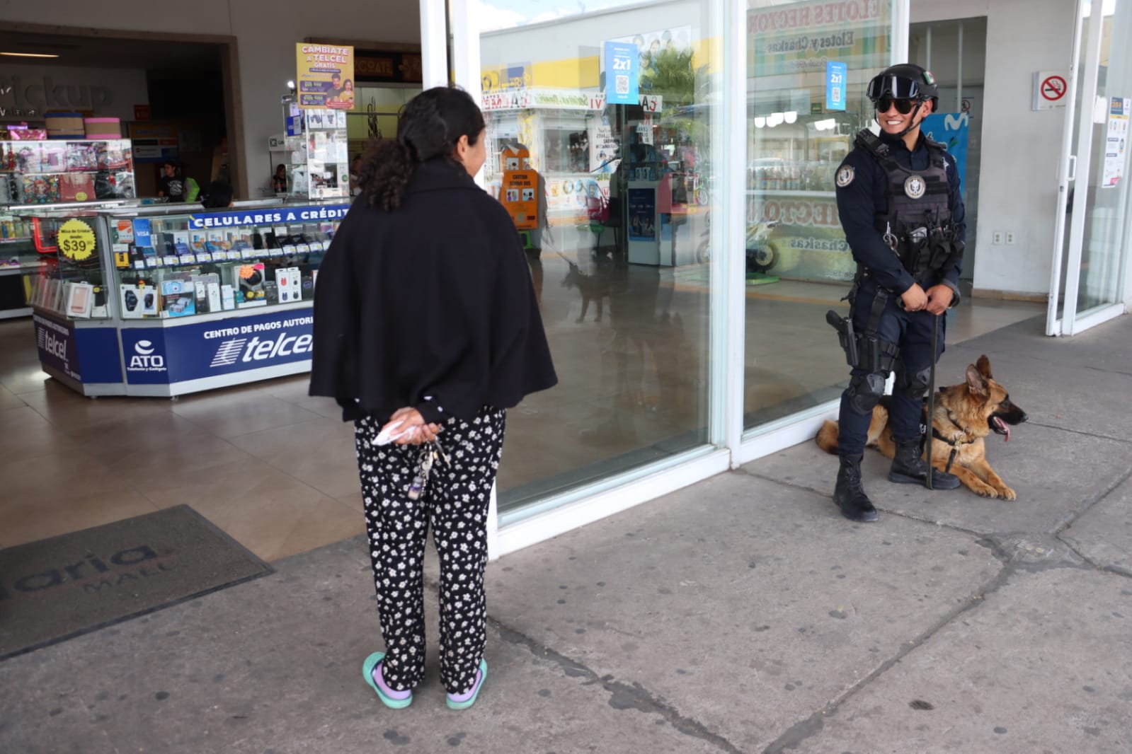 Con el propósito de brindar seguridad a las personas que asisten a los centros comerciales y a empleados y propietarios de negocios, la Secretaría de Seguridad Pública Municipal de Aguascalientes (SSPM) como parte del operativo Barrio Seguro, realiza recorridos de vigilancia de manera permanente en dichas zonas, fortaleciendo así la proximidad social y la prevención del delito mediante la participación de binomios caninos del Grupo K9.