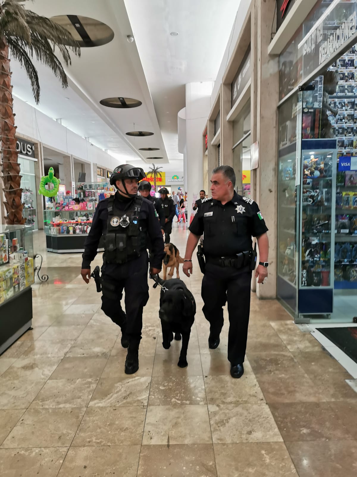 Antonio Martínez apuntó que la instrucción al cuerpo policial es de reforzar la vigilancia en estos sitios, así como la proximidad con el sector comercial y con la ciudadanía en general para que todos puedan sentirse resguardados por los oficiales de la Policía Comercial y en su caso con el refuerzo de los recorridos que el Grupo K9 hace al interior y exterior de los mismos, en donde participaron en esta ocasión los binomios integrados por ejemplares como: Matt, Maya y Dexter, de razas labrador, pastor alemán y pastor holandés, los cuales están entrenados para detectar sustancias prohibidas, armas y en acciones de protección policial.