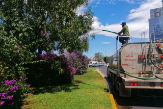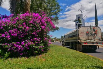 Carlos España Martínez, secretario de Servicios Públicos, comentó que las jornadas de riego en los principales camellones se llevan a cabo de acuerdo a una estrategia que permita el flujo vehicular.