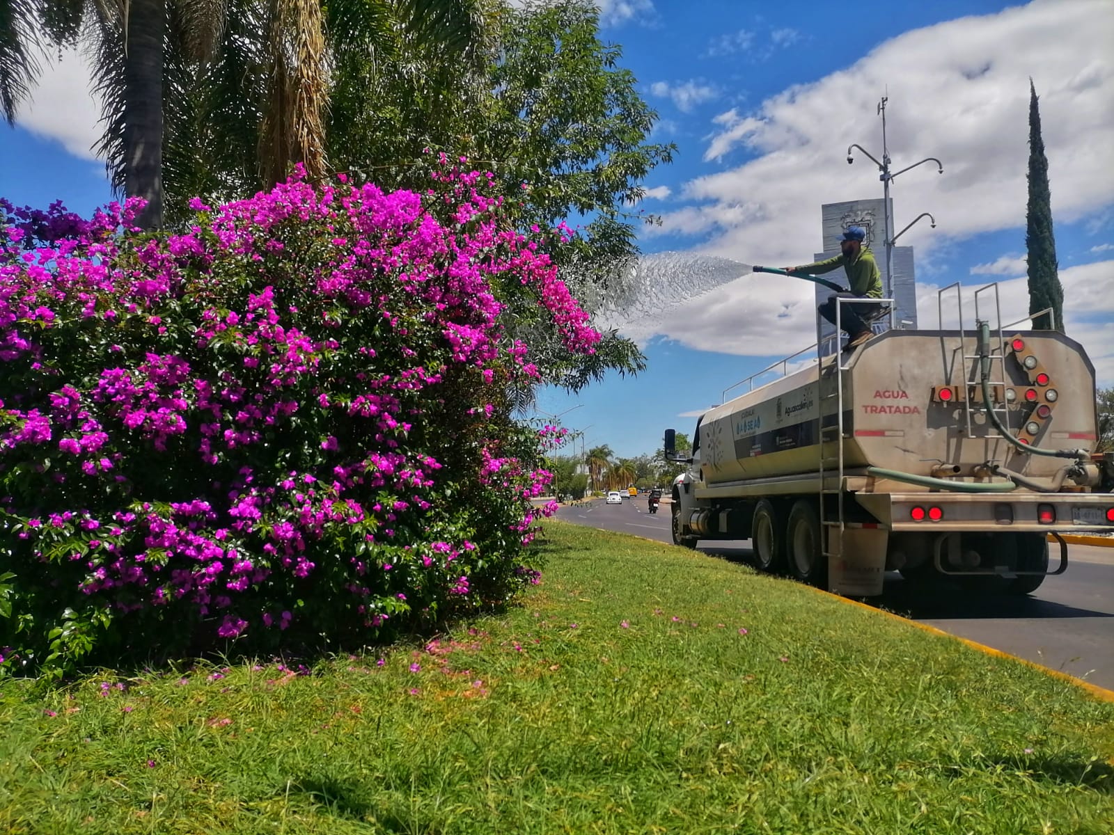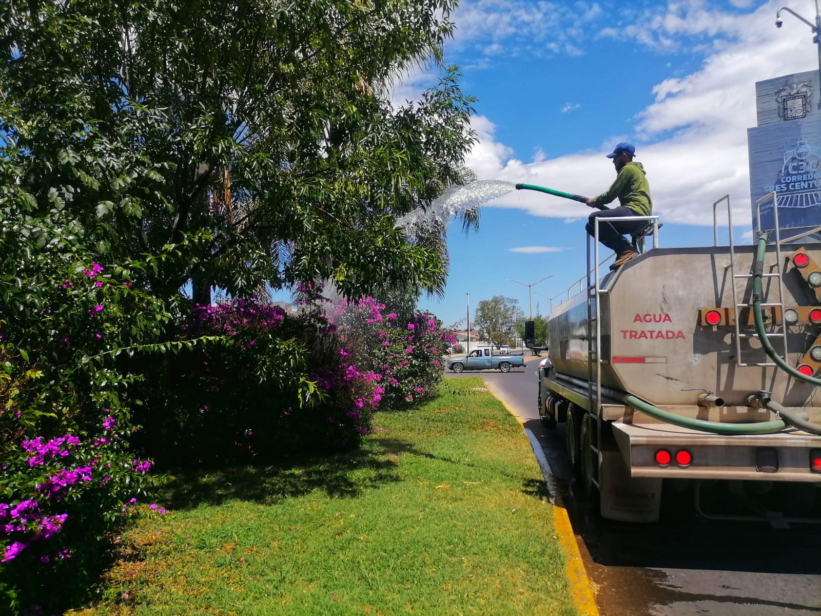 Asimismo, se está dando mantenimiento a los sistemas de riego por aspersión instalados en varios camellones de la ciudad, adecuando los horarios de riego para que sean activados por la mañana o por la noche, con el fin de evitar la evaporación por las altas temperaturas.
