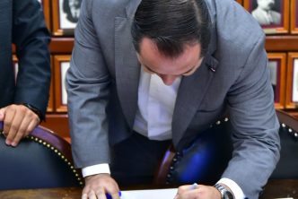 Este lunes, el presidente municipal Leo Montañez firmó con Notarios Públicos las escrituras de predios, a través de las cuales se consolidará un mejor equipamiento urbano y espacios públicos, para continuar brindando a la ciudadanía servicios públicos eficientes.