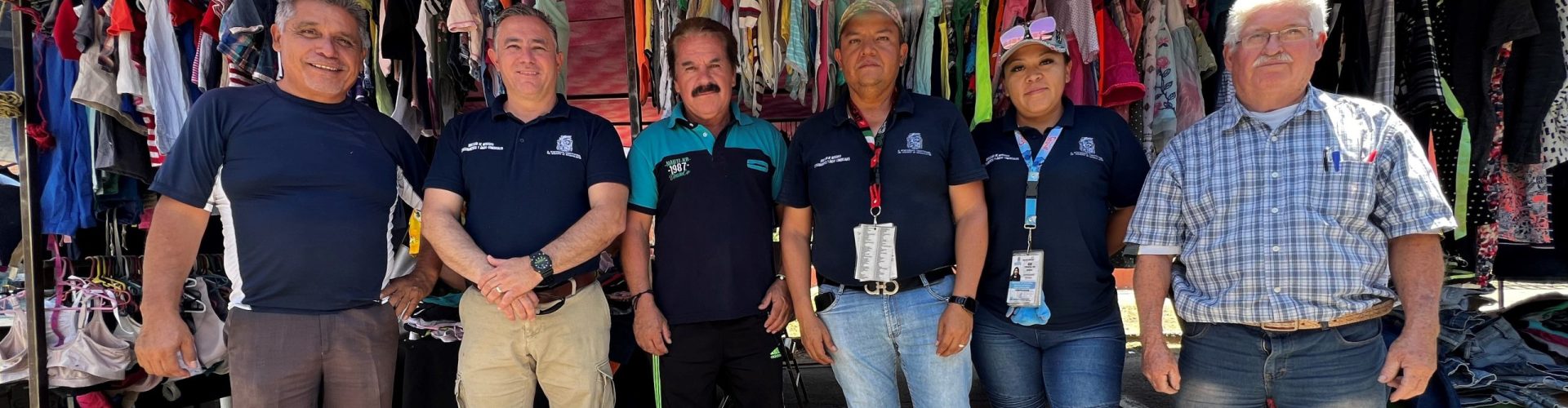 El director de Mercados, Israel Díaz García, acompañado de grupos de verificadores, realiza constantes operativos en los 72 tianguis de la ciudad; una de las revisiones de la semana fue en el tianguis ubicado en la colonia Jesús Terán, a la cual se sumaron los líderes tianguistas Manuel Tovar Ruiz, Manuel Oliva Serna, Mario Alberto Zamarripa Gómez y Oscar Chávez Viveros, quienes velan por los derechos de los mismos y también ayudan a la autoridad municipal a mantener el orden y control.