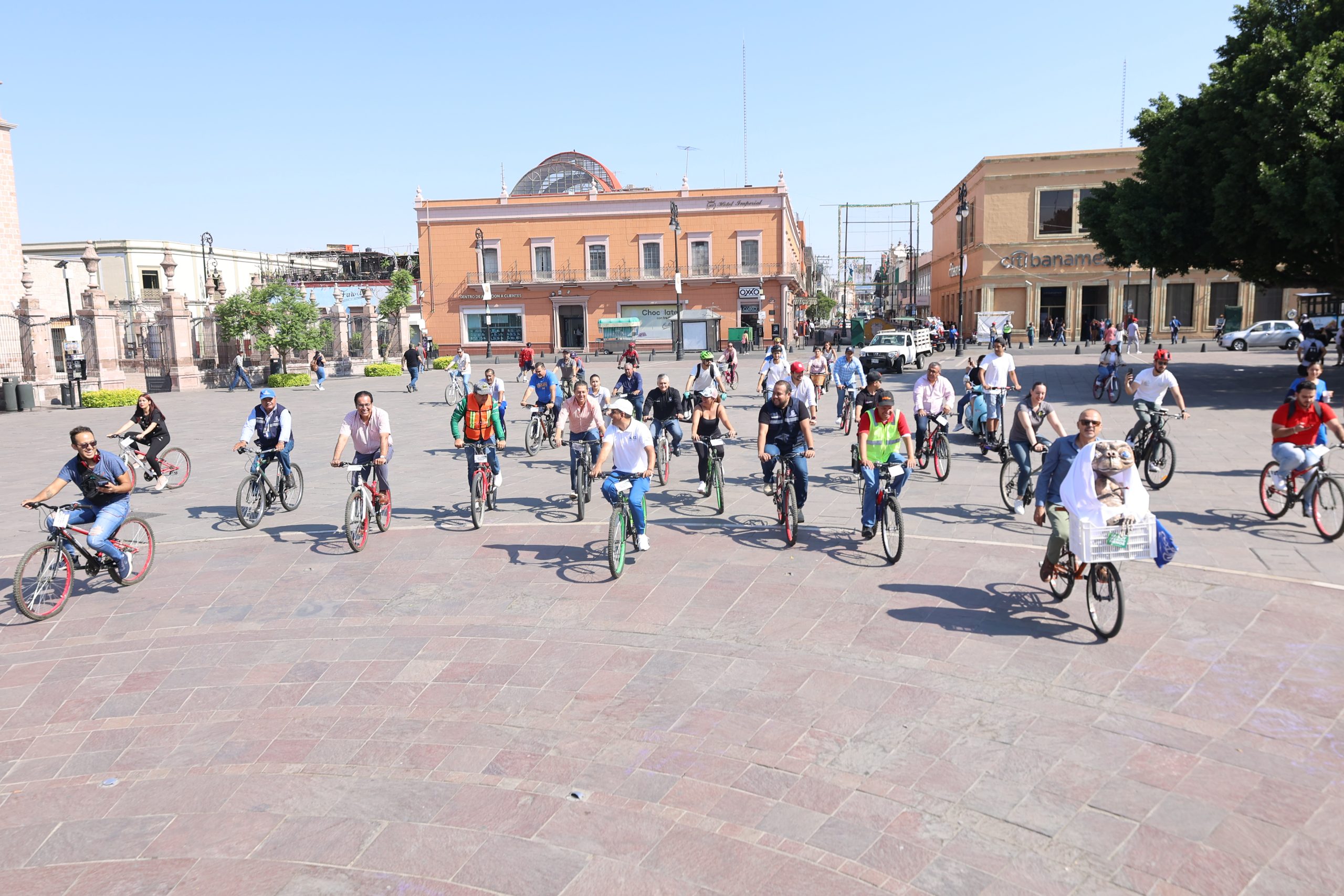 Encabezado por Josafat Martínez de Luna, coordinador de la BiciEscuela, este recorrido se realizó por las principales calles del Centro Histórico de la ciudad, con la participación de los regidores Juan Guillermo Alaniz de León, María Guadalupe Arellano Espinosa, Carlos Fernando Ortega Tiscareño, Gustavo Granados Corzo, Alejandro Serrano Almanza y los titulares de dependencias municipales como Sylvia Garfias Cedillo, Julio César Medina Delgado, Austria Dávila de la Llave, Karla Ortega González y Brenda Barrientos Delgado, además de grupos ciclistas.