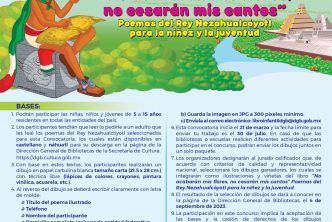 Los participantes podrán descargar los poemas del Rey Nezahualcóyotl en la página de Dirección General de Bibliotecas de la Secretaría de la Cultura: https://dgb.cultura.gob.mx. ,