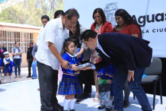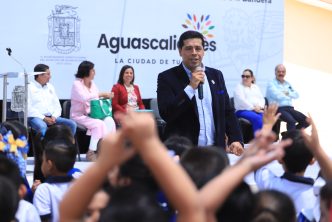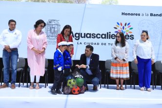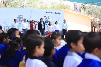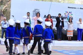 La mañana de este lunes, el presidente municipal de Aguascalientes, Leo Montañez encabezó la ceremonia de los honores a la bandera en el jardín de niños “José Vasconcelos”, en el fraccionamiento José López Portillo; en la cual, reconoció el trabajo que realizan maestros y padres de familia para inculcar en los pequeños valores cívicos.