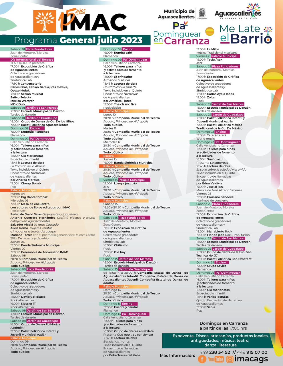 El Instituto Municipal Aguascalentense para la Cultura (IMAC), presentó el programa oficial de actividades por la celebración del 15 aniversario de esta dependencia dedicada al fomento del arte y cultura.