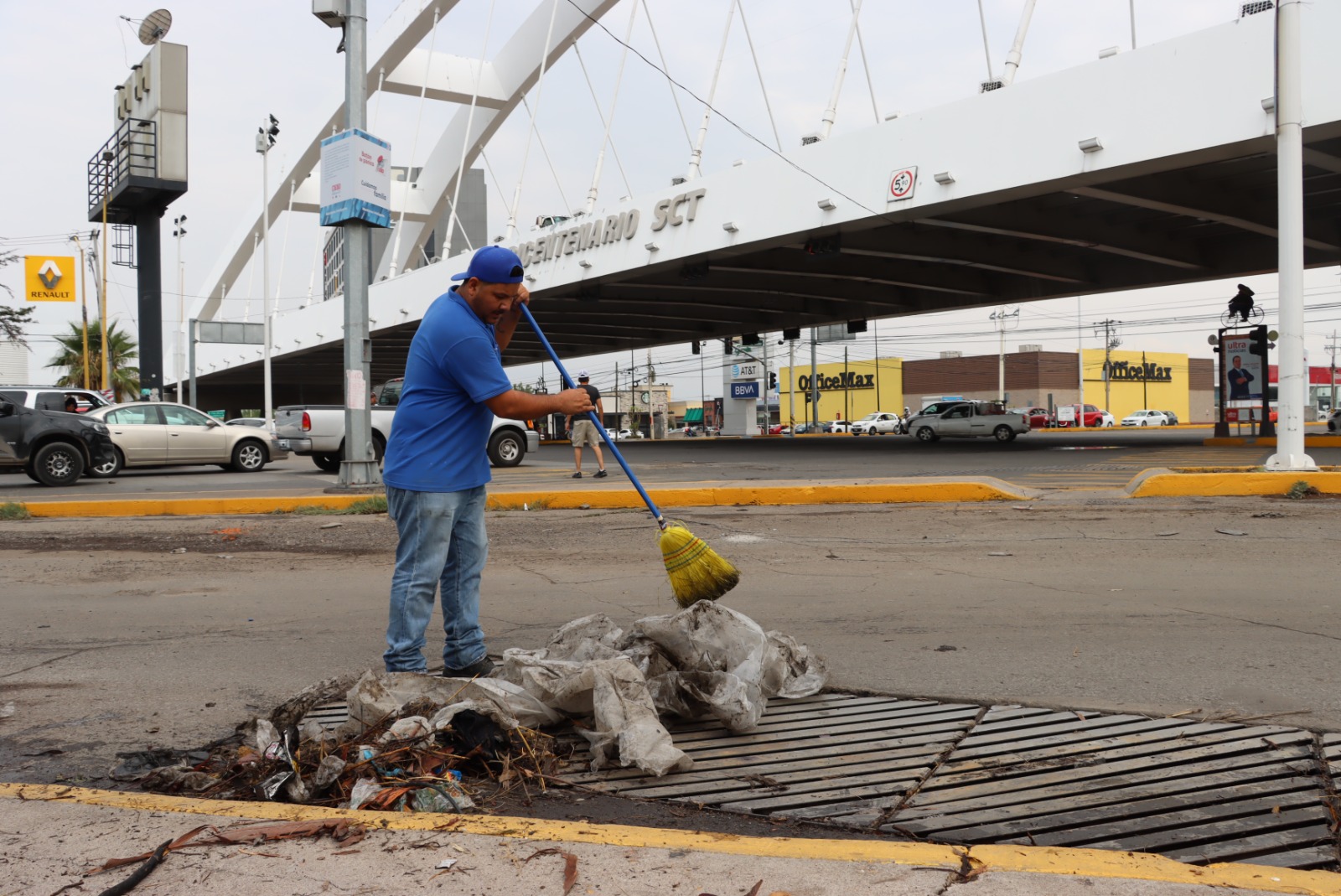 El director de Limpia y Aseo Público, Cristian Hernández Macías, informó que con la llegada de las primeras precipitaciones, se intensificaron los recorridos de supervisión y limpieza de los desagües y canaletas ubicadas en las avenidas principales del municipio de Aguascalientes, para evitar que haya residuos que provoquen el taponamiento del sistema de alcantarillado.