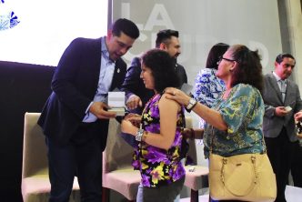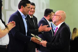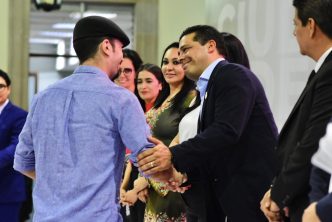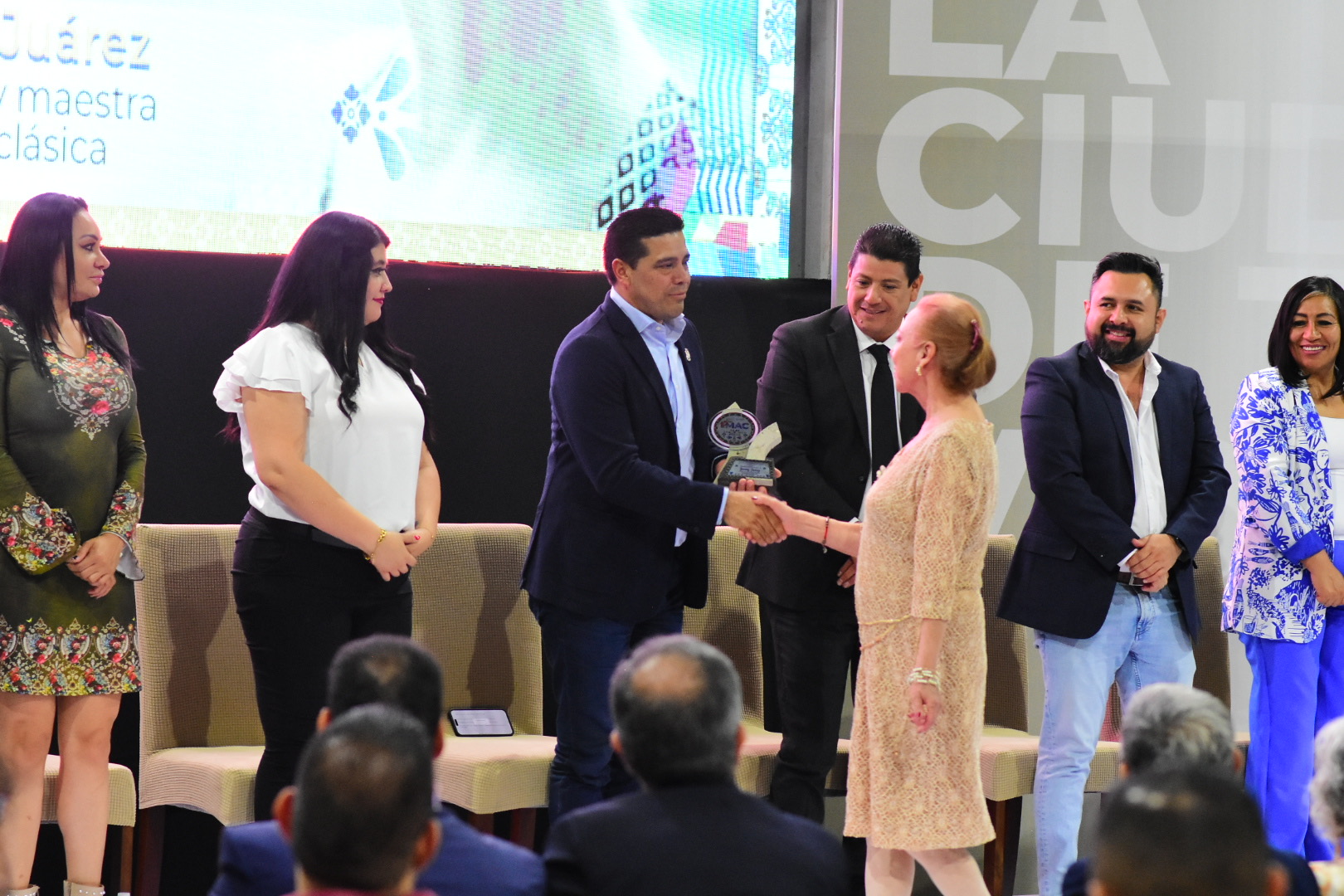 Por su destacada labor a favor de la cultura, el presidente municipal entregó un reconocimiento póstumo al poeta y promotor cultural, Víctor Sandoval, mismo que recibió su nieto Emiliano Sandoval.
