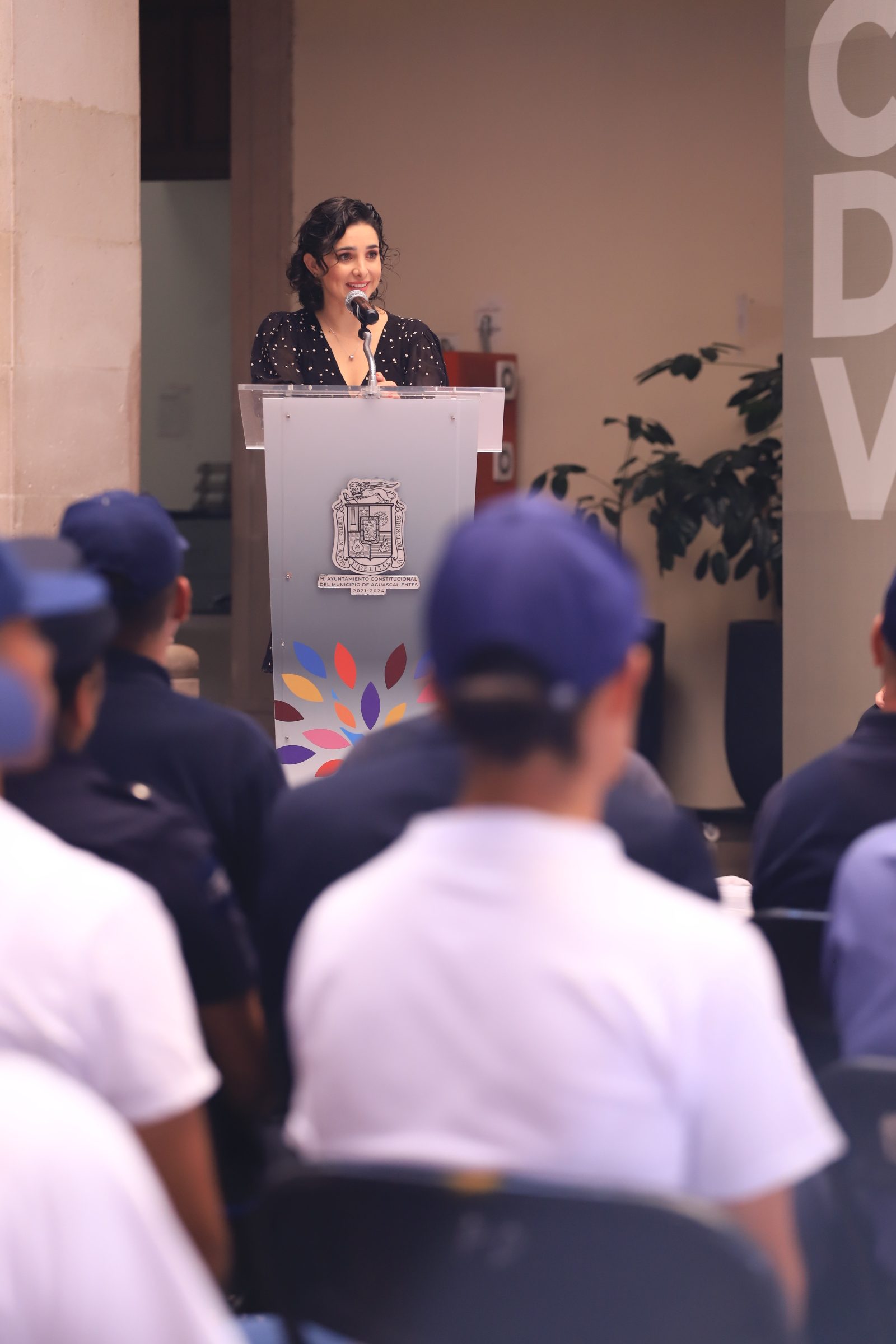 La regidora Alejandra Peña Curiel, presidenta de la Comisión de Seguridad Pública y Protección Civil en el Ayuntamiento de Aguascalientes, se refirió al apoyo mutuo, el compromiso, lealtad, y amor por la placa que portan los uniformados, a quienes destacó como héroes por la fortaleza y dedicación con la que sirven y protegen a las familias.