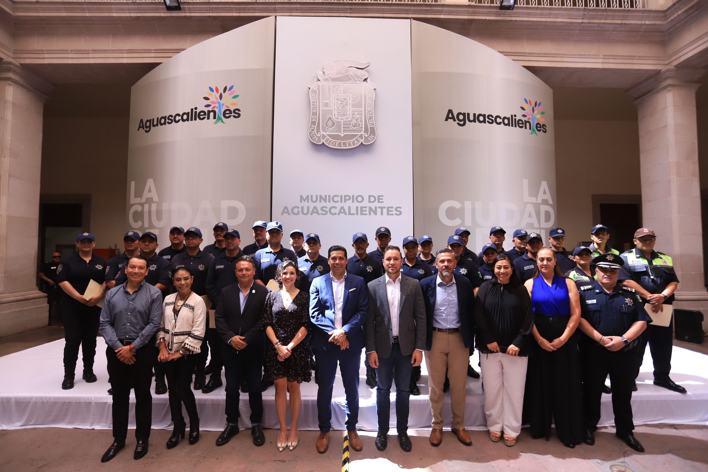 El presidente municipal de Aguascalientes, Leo Montañez, encabezó con el presidente municipal de Encarnación de Díaz, Jalisco, Gilberto Antonio Palomar González, la ceremonia de entrega de constancias de capacitación a integrantes operativos de la Dirección de Policía Preventiva del Municipio de Encarnación de Díaz, Jalisco, quienes participaron en cursos de capacitación y evaluación por parte del Instituto en Seguridad Pública de Aguascalientes, reforzando los conocimientos y habilidades para cuidar de la integridad de la ciudadanía.