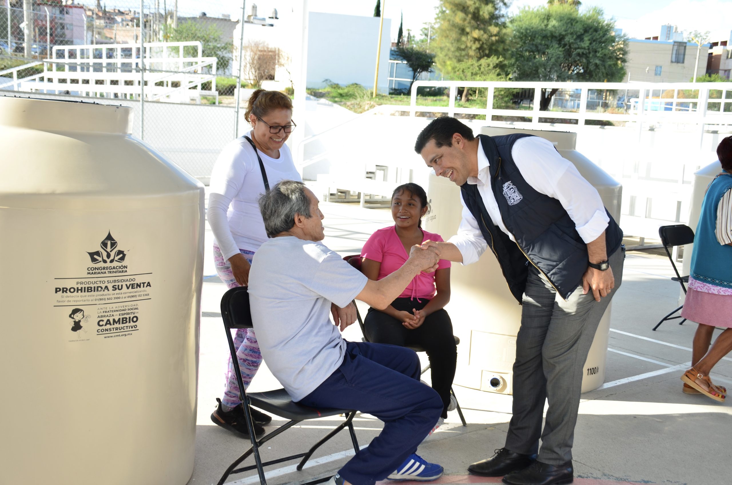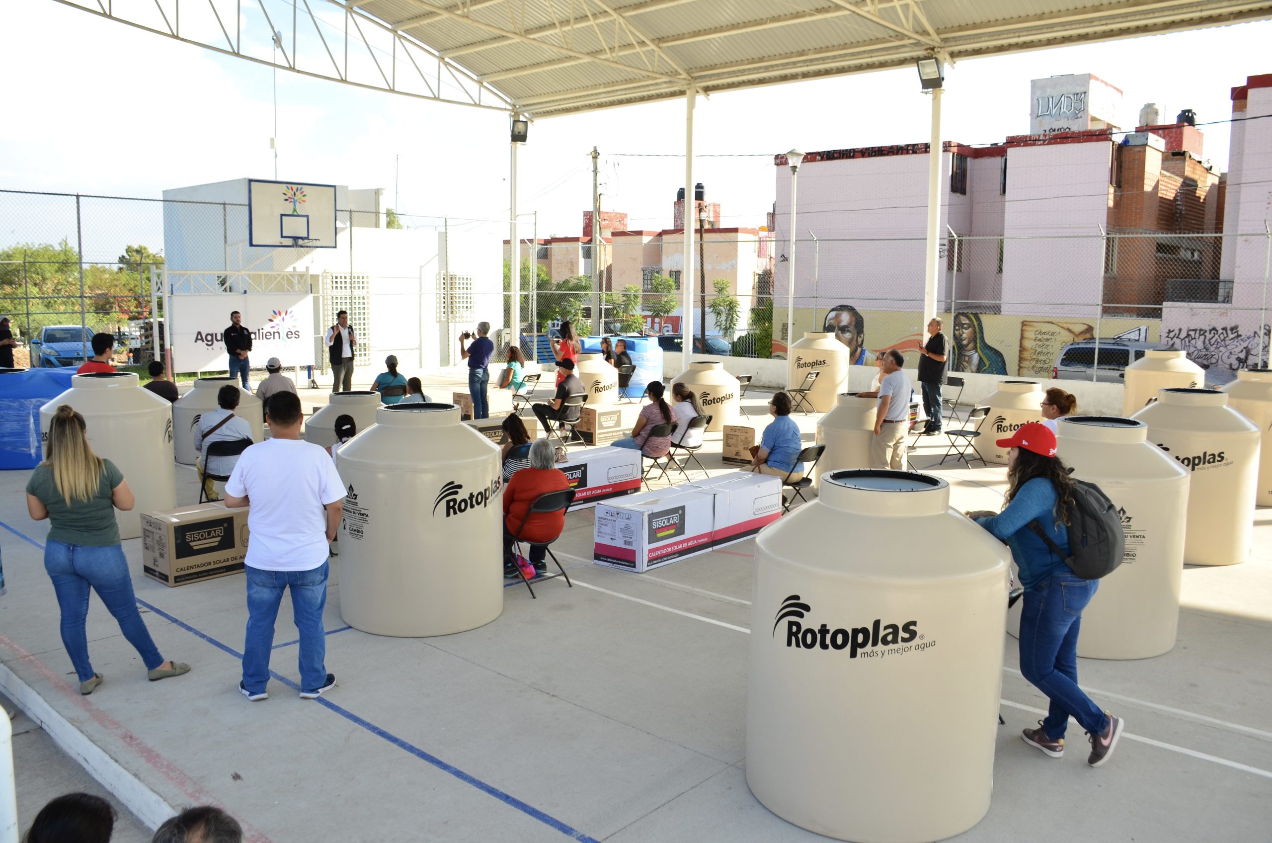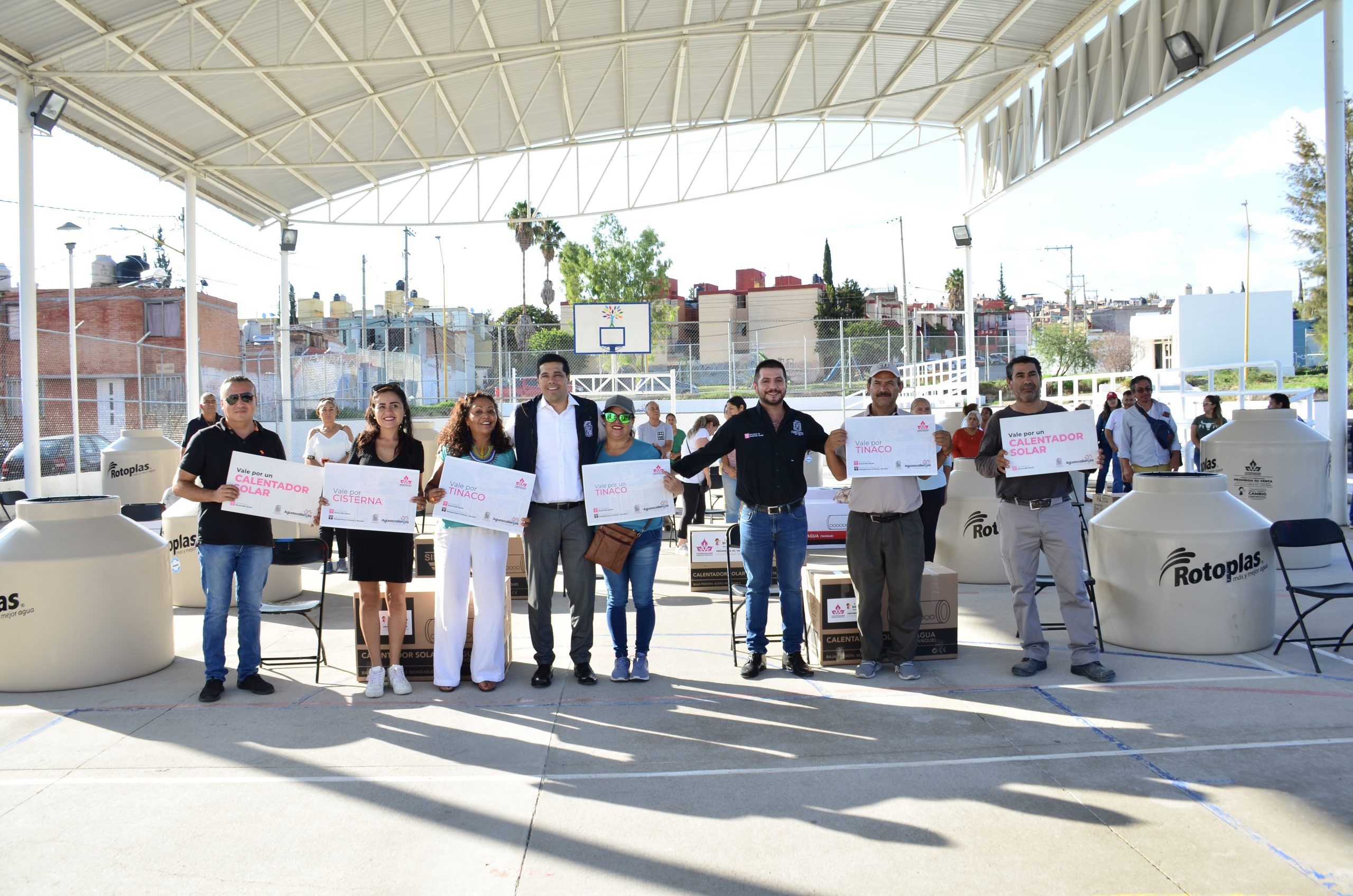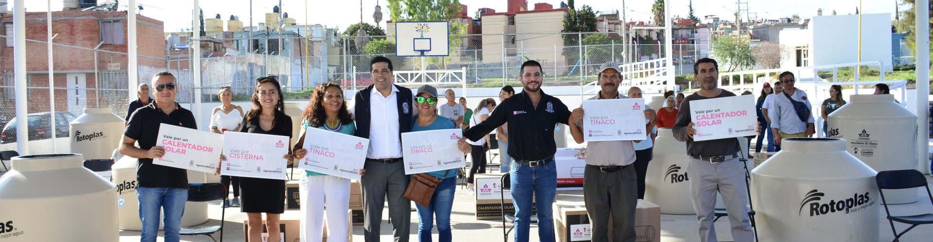 El Municipio de Aguascalientes a través de la Congregación Mariana Trinitaria, entregó equipamiento para el hogar a vecinos del fraccionamiento Fidel Velázquez, como tinacos, cisternas, bombas centrífugas y calentadores solares.