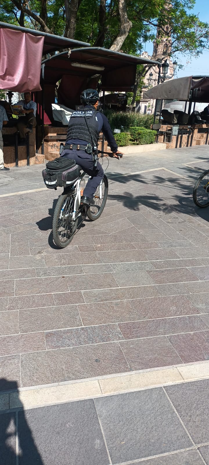 Oficiales de la Policía Municipal de Aguascalientes, pertenecientes al Grupo Operativo de Ciclopolicías, han reforzado la vigilancia en diferentes colonias, barrios y fraccionamientos de la zona centro de la ciudad, en coordinación con los policías que realizan recorridos de seguridad en vehículos y motocicletas, las 24 horas del día, los siete días de la semana.